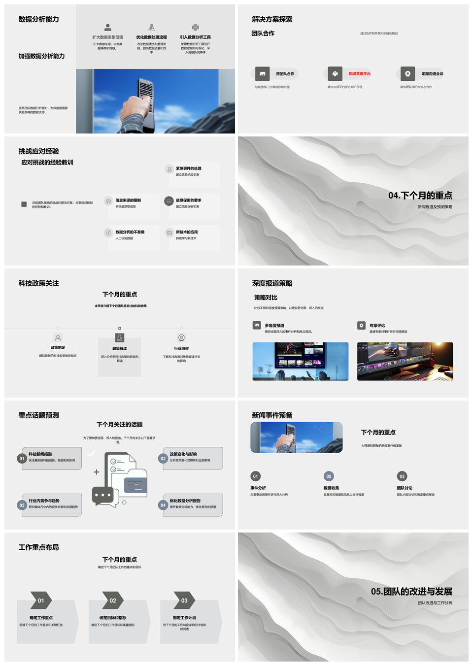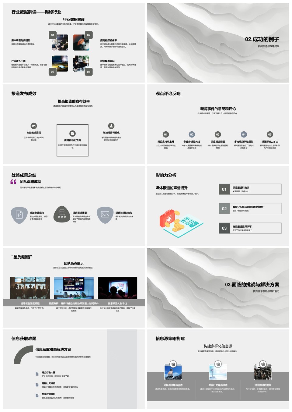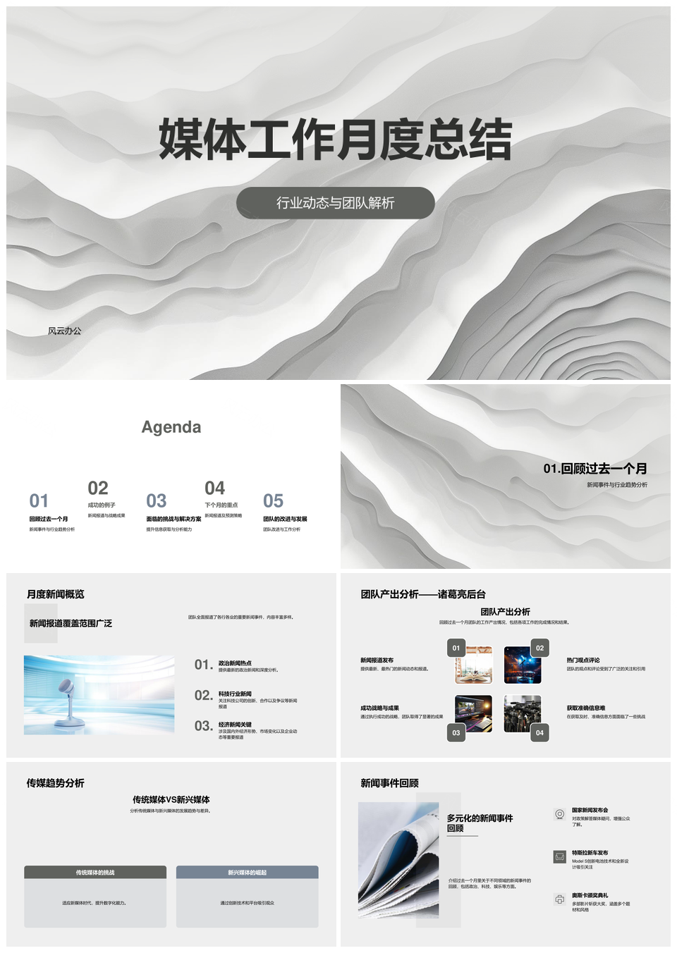 这是一张媒体月结行业趋势新闻分析团队战略成果PPT模板,包含媒体、月结、行业、趋势、新闻、分析、团队、战略、成果等主题内容,也可用作媒体月结行业趋势、行业趋势新闻分析、趋势新闻分析团队、新闻分析团队战略、分析团队战略成果、媒体月结行业、月结行业趋势、行业趋势新闻、趋势新闻分析、新闻分析团队、分析团队战略、团队战略成果、媒体月结、月结行业、行业趋势等PPT场景使用。 风云办公提供的媒体月结行业趋势新闻分析团队战略成果PPT模板,下载格式为pptx,一共33页,作品中文字及图均可以修改和编辑,图片更改请在作品中右键图片并更换,文字修改请直接点击文字进行修改。