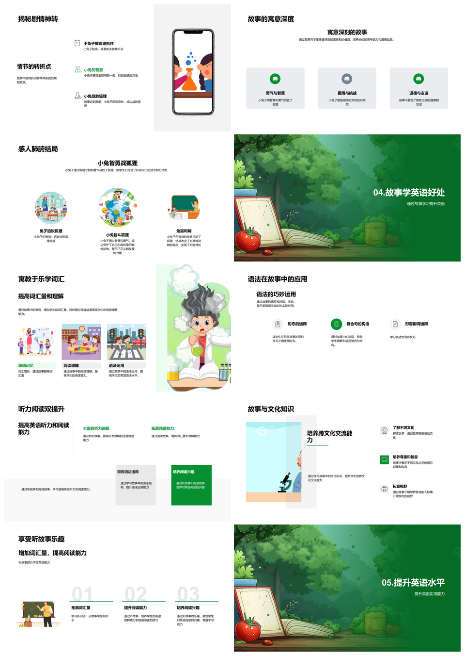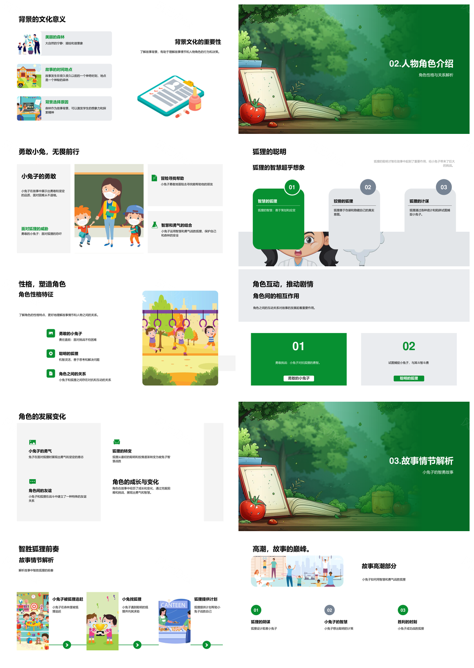 这是一张小学英语森林故事小兔狐狸教学角色情节PPT模板,包含小学英语、森林故事、小兔、狐狸、教学、角色、情节等主题内容,也可用作小学英语森林故事、森林故事小兔狐狸、小兔狐狸教学角色、狐狸教学角色情节、小学英语教学角色、小学英语森林小兔、英语森林故事小兔、森林故事教学角色、小兔狐狸角色情节、小学森林故事小兔、小学英语教学小兔、森林小兔狐狸教学、教学角色情节故事、英语教学角色情节、英语森林小兔狐狸等PPT场景使用。 风云办公提供的小学英语森林故事小兔狐狸教学角色情节PPT模板,下载格式为pptx,一共33页,作品中文字及图均可以修改和编辑,图片更改请在作品中右键图片并更换,文字修改请直接点击文字进行修改。