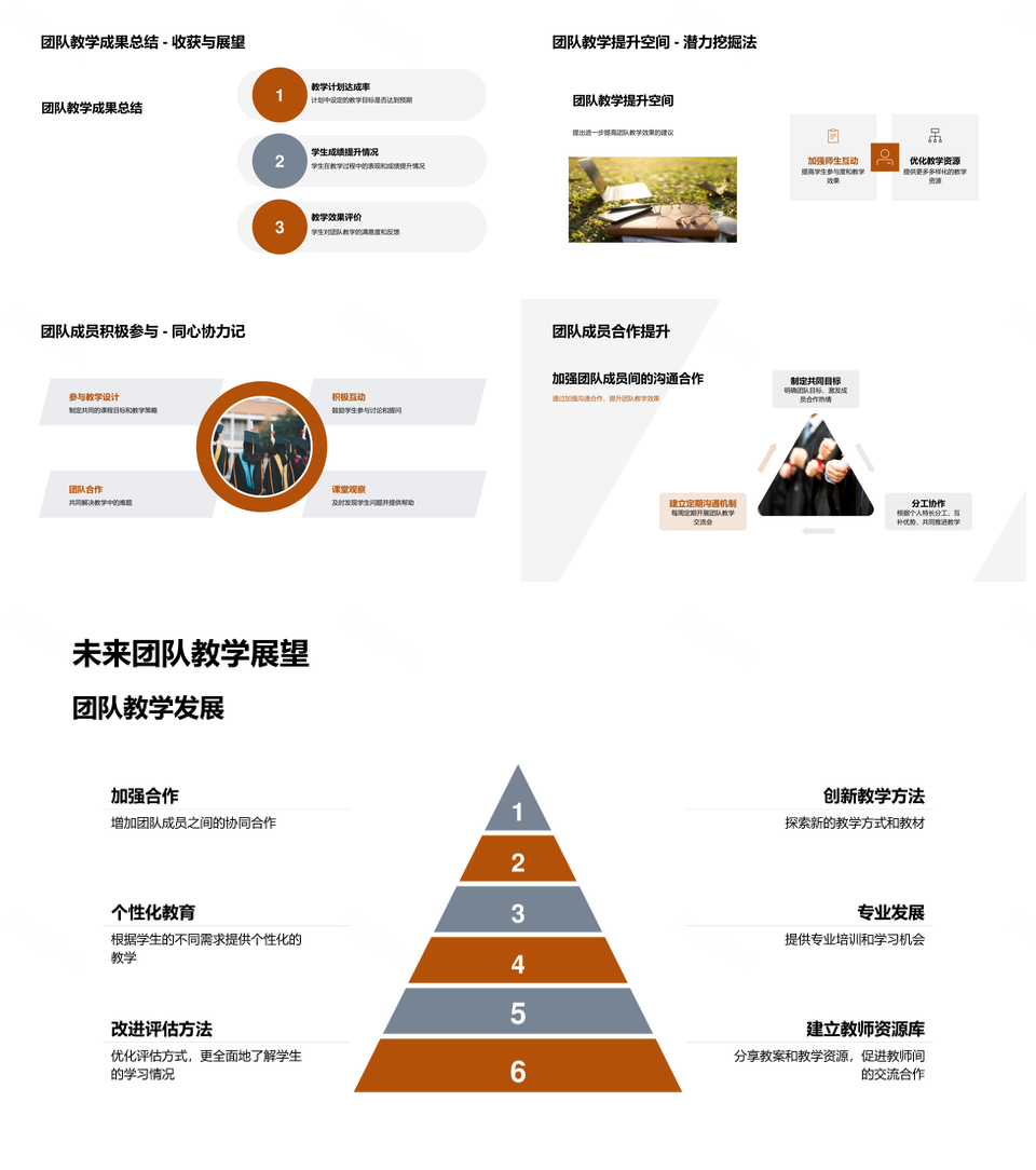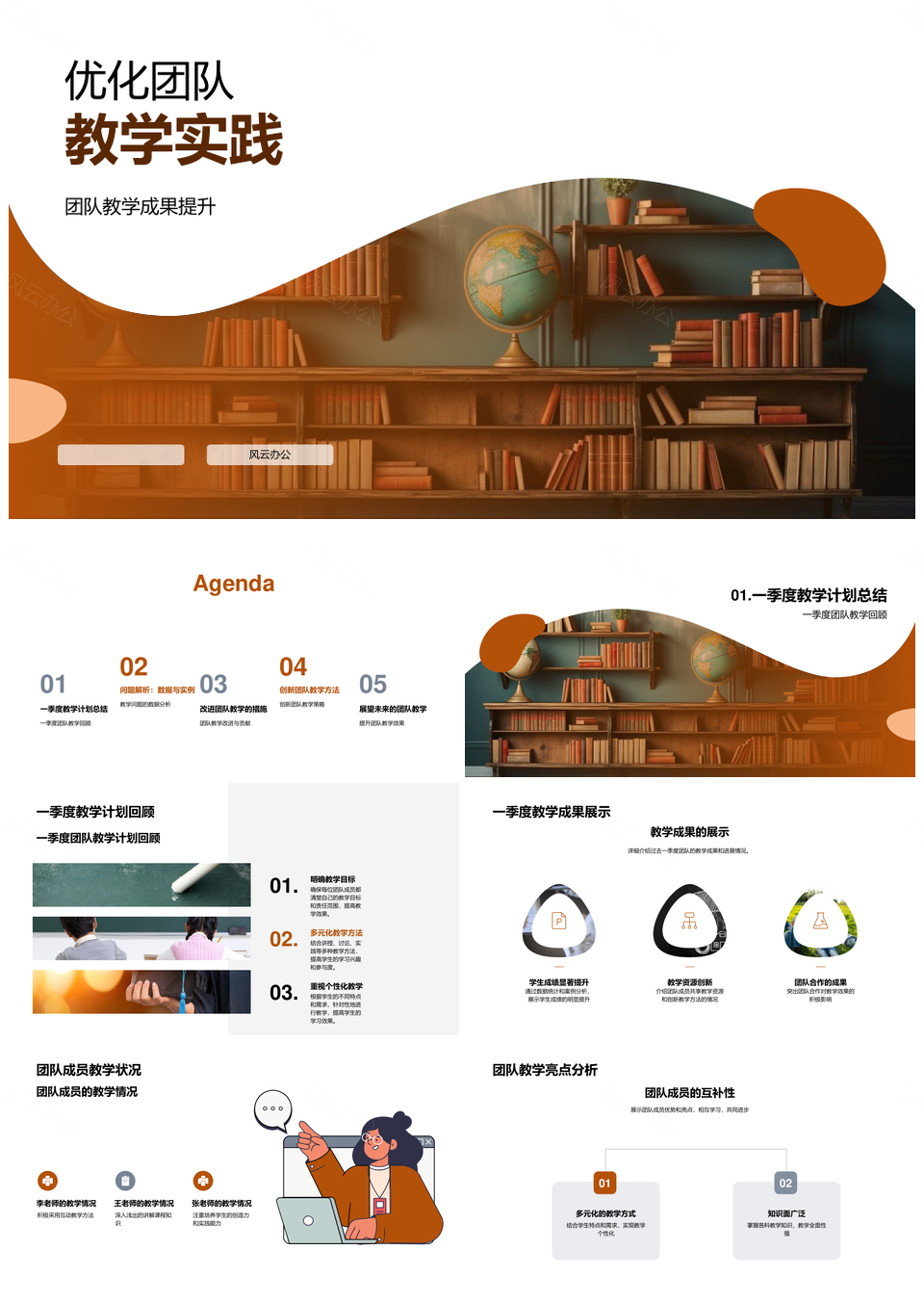 风云办公提供的团队教学优化创新提升成果与学习效果PPT模板,下载格式为pptx,一共33页,作品中文字及图均可以修改和编辑,图片更改请在作品中右键图片并更换,文字修改请直接点击文字进行修改。