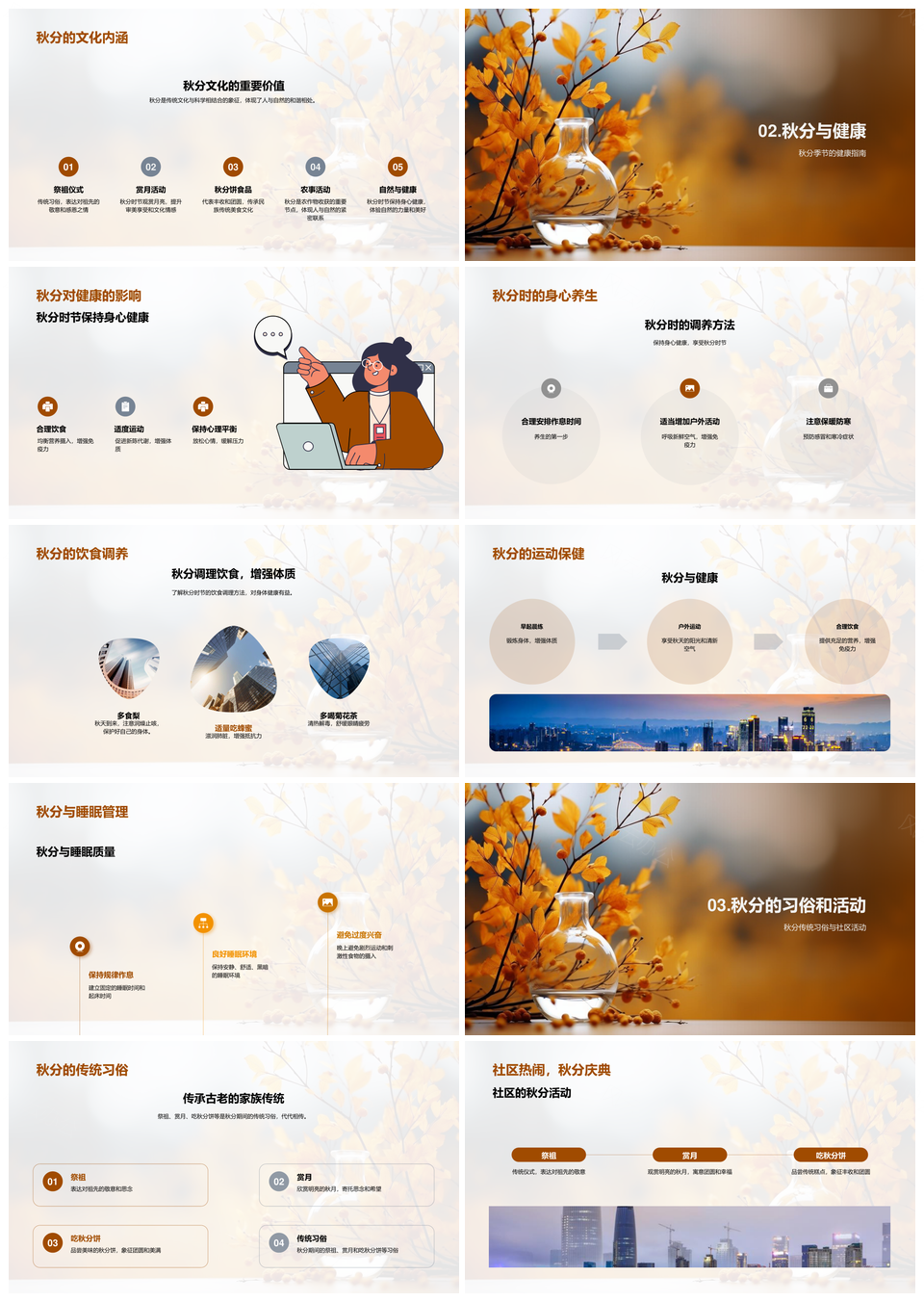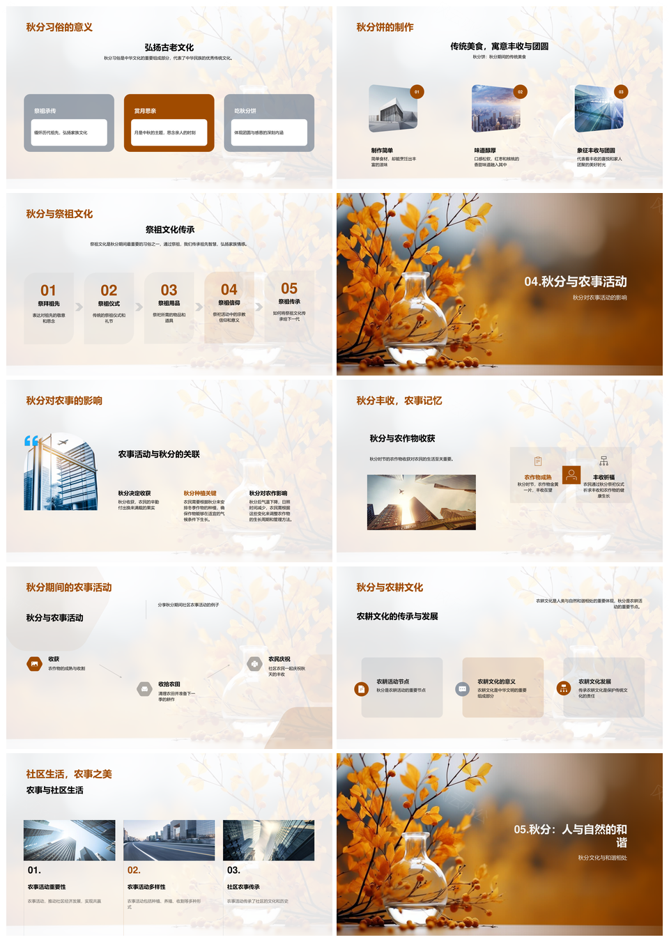 这是一张秋分科学养生健康生活社区习俗农事PPT模板,包含秋分、科学、养生、健康、生活、社区、习俗、农事等主题内容,也可用作秋分科学养生健康生活、科学养生健康生活社区、养生健康生活社区习俗、健康生活社区习俗农事、生活社区习俗农事秋分、社区习俗农事秋分科学、习俗农事秋分科学养生、秋分农事科学养生健康、养生健康社区习俗农事、科学健康生活习俗农事、秋分养生健康社区习俗、健康生活习俗农事科学、科学养生社区农事秋分、秋分科学健康习俗农事、养生生活社区农事习俗等PPT场景使用。