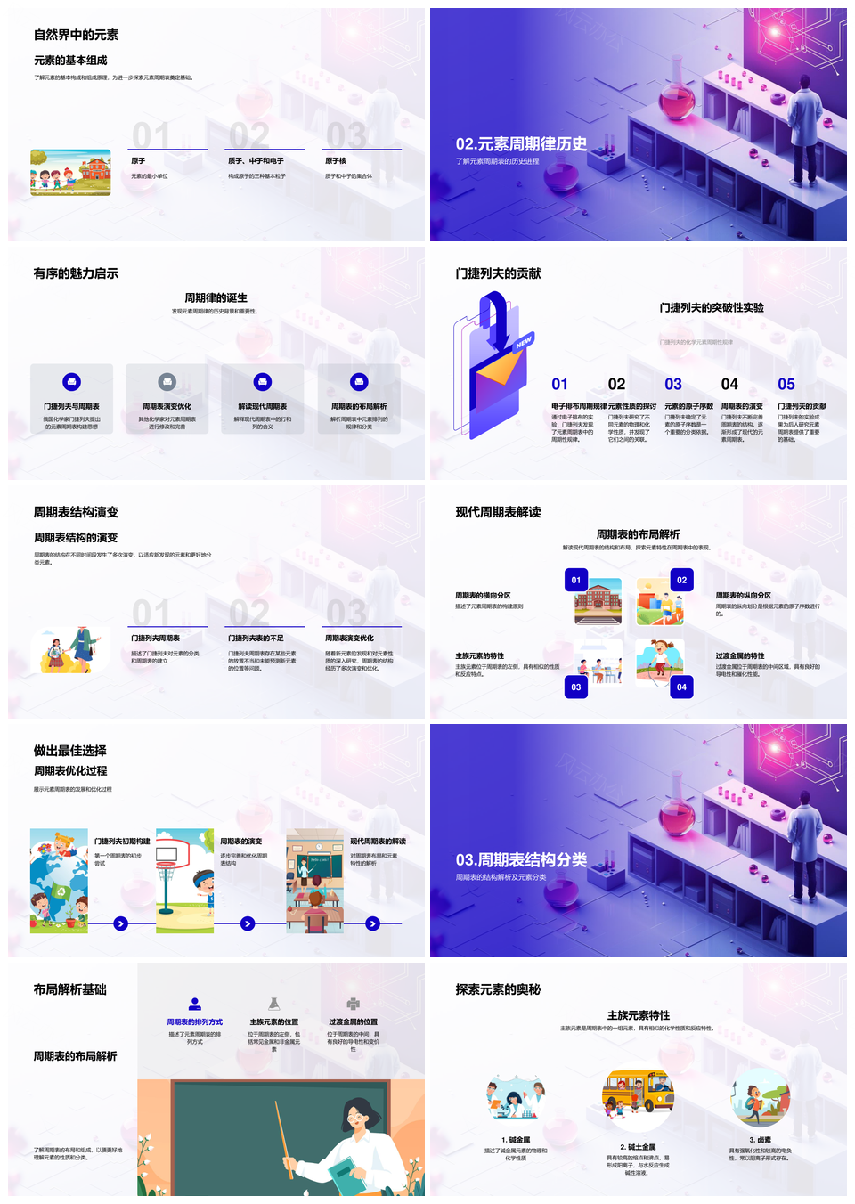 这是一张初中元素周期表门捷列夫周期律与结构教学PPT模板,包含初中、元素周期表、门捷列夫、周期律、结构、教学等主题内容,也可用作初中元素周期表门捷列夫周期律、元素周期表门捷列夫周期律教学、门捷列夫周期律结构教学、初中元素周期表教学、初中元素周期表结构、元素周期表周期律结构、周期表门捷列夫周期律、元素周期律结构教学、门捷列夫周期律结构、初中元素结构教学、周期表门捷列夫教学、元素周期表结构教学、初中周期律结构教学、门捷列夫结构教学、周期律结构教学等PPT场景使用。 风云办公提供的初中元素周期表门捷列夫周期律与结构教学PPT模板,下载格式为pptx,一共33页,作品中文字及图均可以修改和编辑,图片更改请在作品中右键图片并更换,文字修改请直接点击文字进行修改。