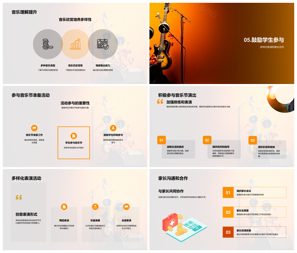 学校音乐节教师培训师策划乐器活动设计PPT模板推荐