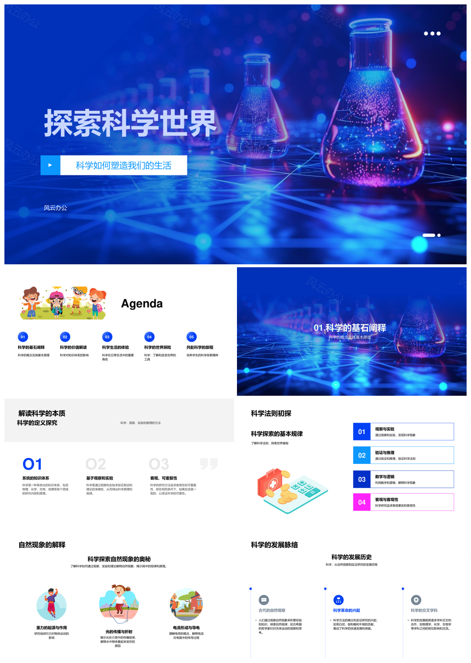 风云办公提供的科学探索基本原理发展应用与生活解析PPT模板,下载格式为pptx,一共33页,作品中文字及图均可以修改和编辑,图片更改请在作品中右键图片并更换,文字修改请直接点击文字进行修改。