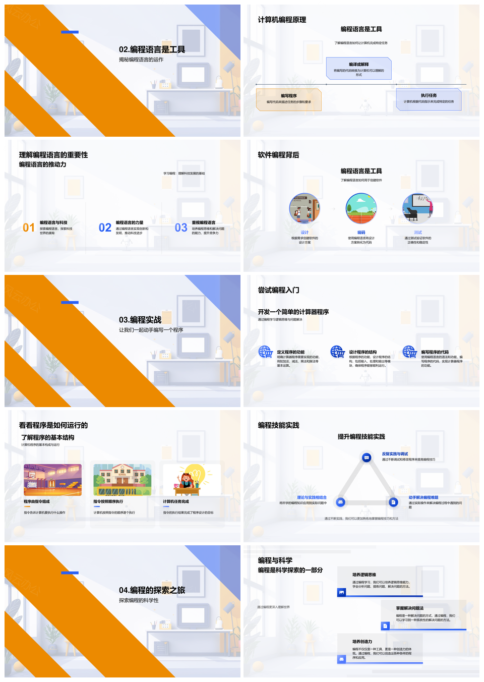这是一张2025小学生编程教学原理分类应用实战科学普及PPT模板,包含2025、小学生、编程教学、原理、分类、应用、实战、科学普及等主题内容,也可用作2025小学生编程教学、小学生编程教学原理、编程教学原理分类、教学原理分类应用、原理分类应用实战、分类应用实战科学、应用实战科学普及、小学生编程教学、编程教学原理、教学原理分类、原理分类应用、分类应用实战、应用实战科学、实战科学普及、科学普及等PPT场景使用。 风云办公提供的2025小学生编程教学原理分类应用实战科学普及PPT模板,下载格式为pptx,一共24页,作品中文字及图均可以修改和编辑,图片更改请在作品中右键图片并更换,文字修改请直接点击文字进行修改。