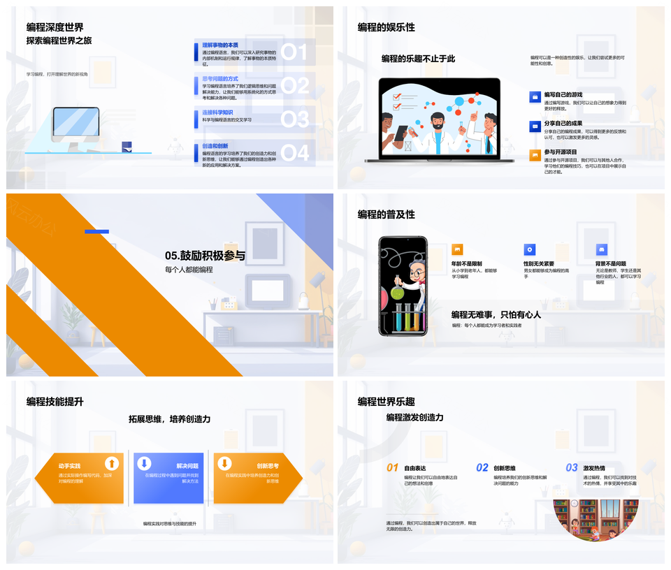 2025小学生编程教学原理分类应用实战科学普及PPT模板推荐