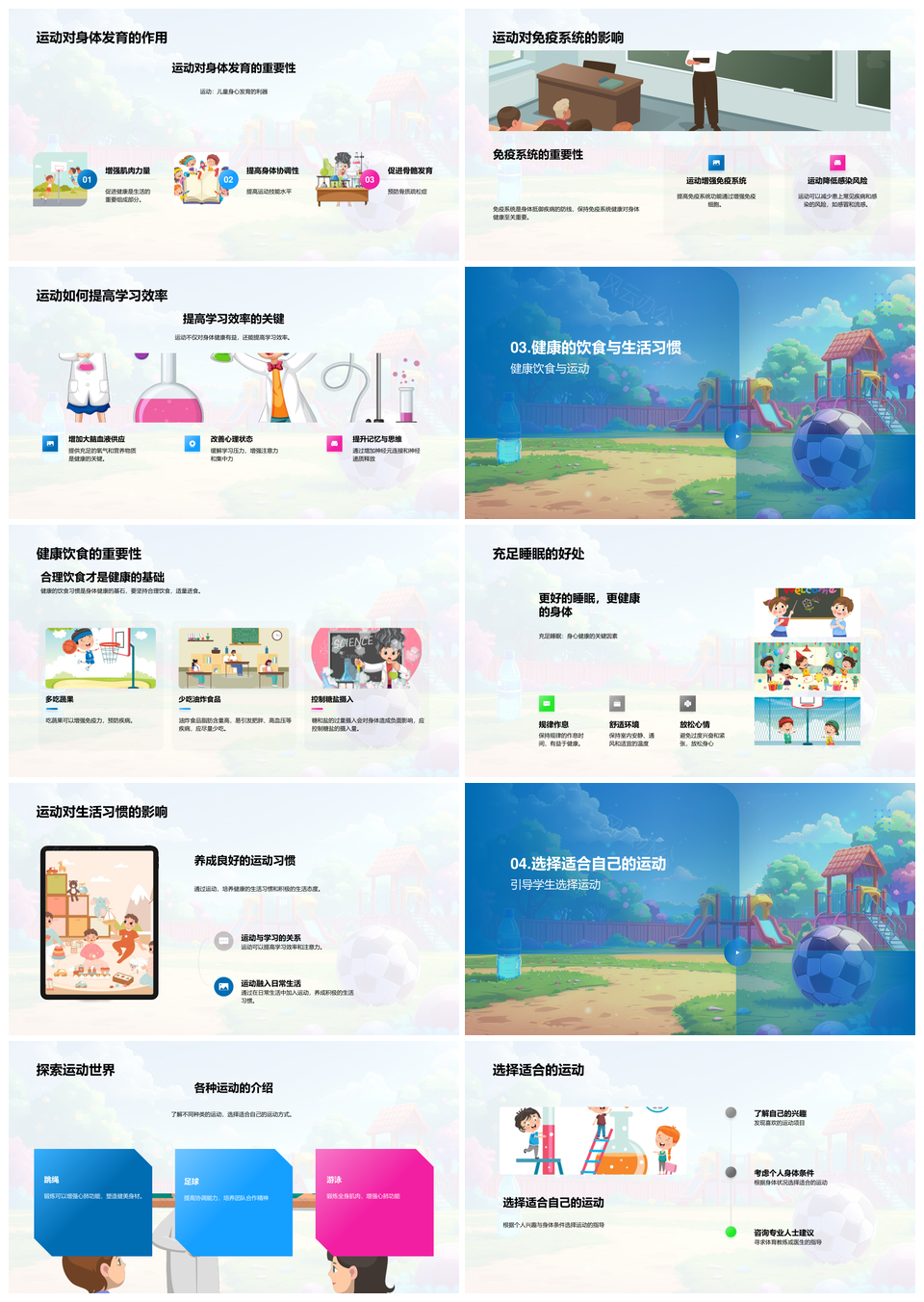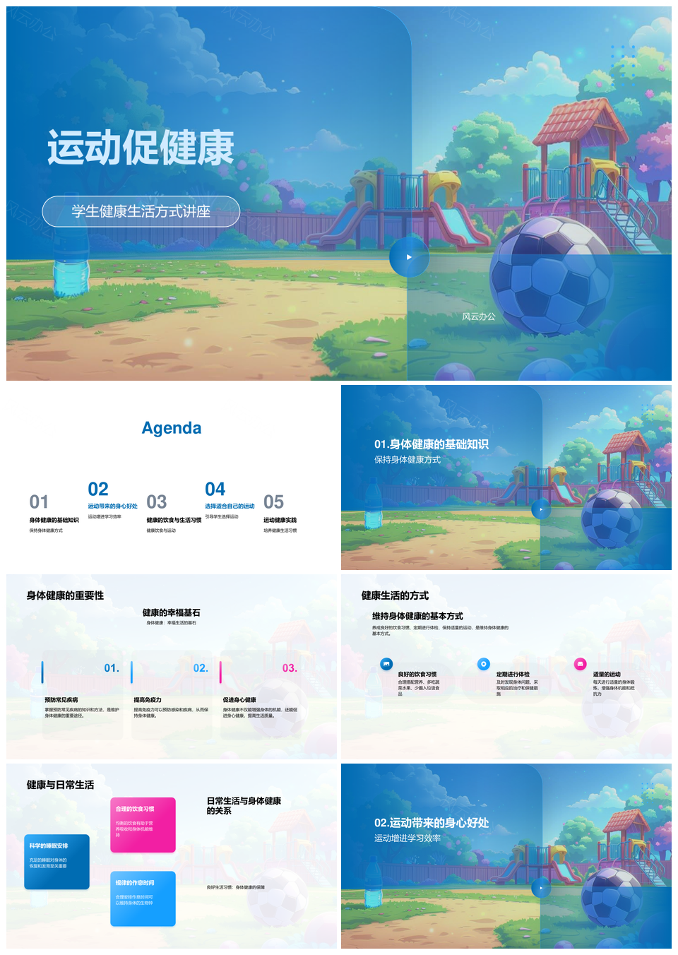 风云办公提供的三年级学生健康生活运动饮食睡眠PPT模板,下载格式为pptx,一共23页,作品中文字及图均可以修改和编辑,图片更改请在作品中右键图片并更换,文字修改请直接点击文字进行修改。