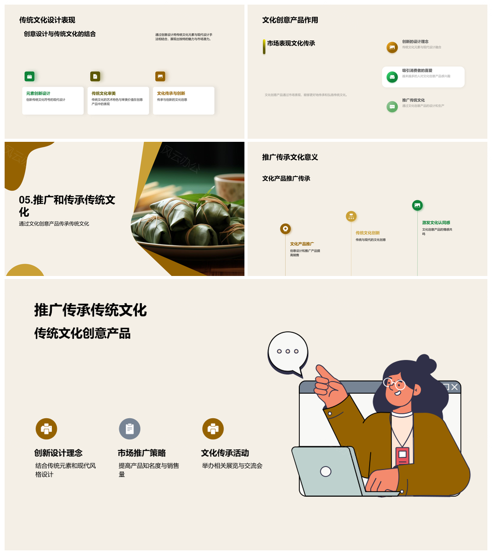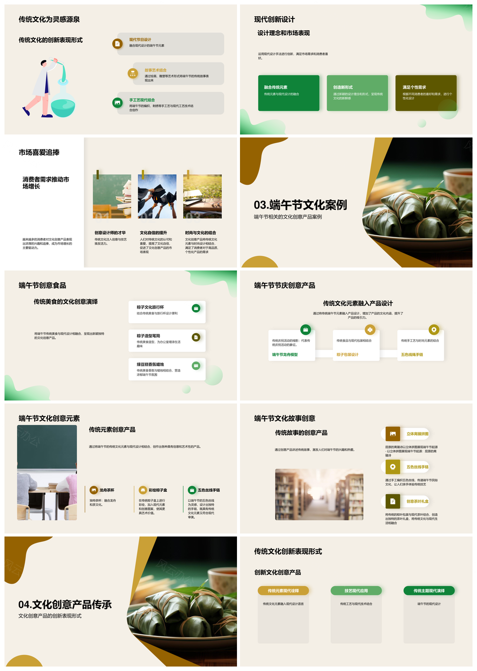 端午节文化创意设计传统现代创新市场融合PPT模板推荐