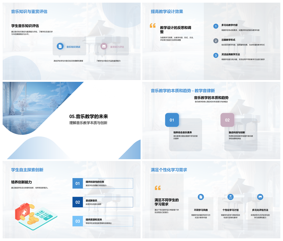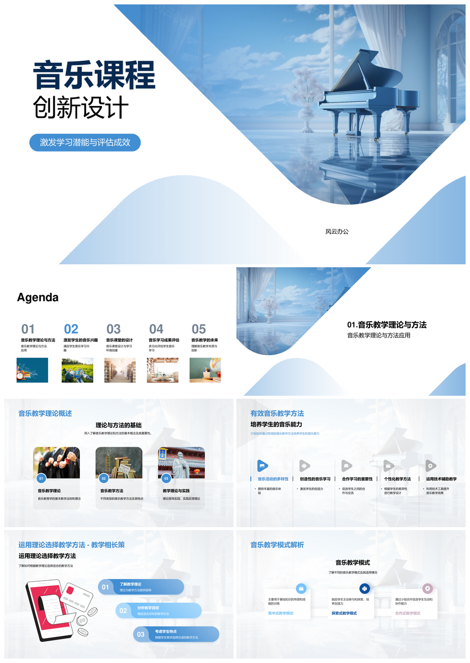 风云办公提供的音乐课程创新教学激发潜能评估探索PPT模板,下载格式为pptx,一共24页,作品中文字及图均可以修改和编辑,图片更改请在作品中右键图片并更换,文字修改请直接点击文字进行修改。
