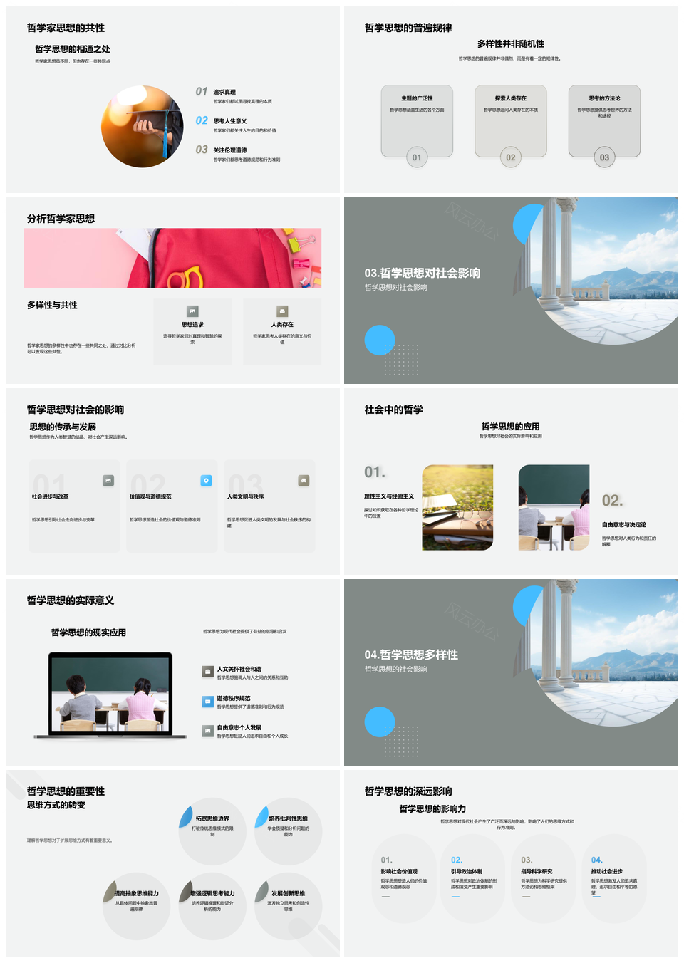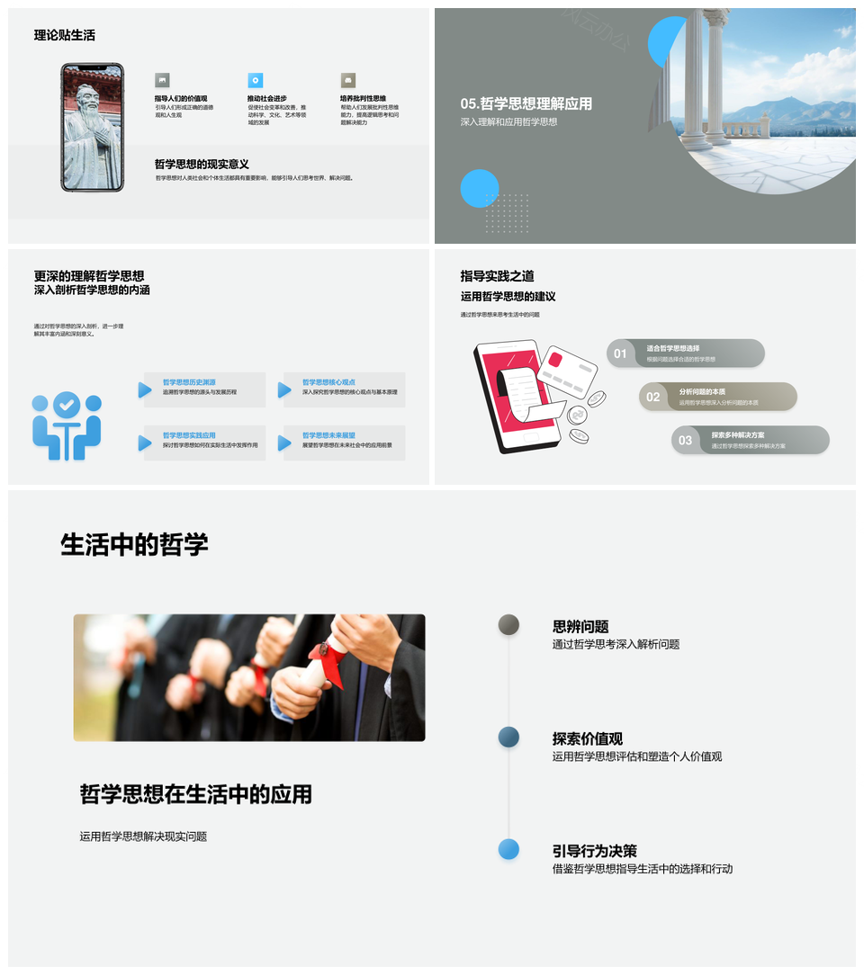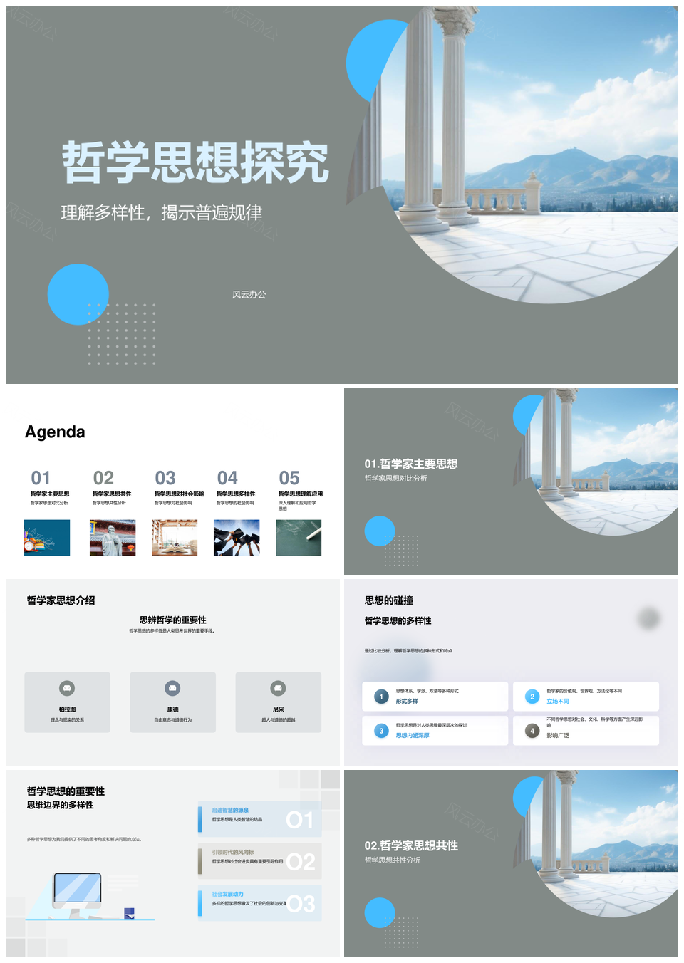 风云办公提供的哲学家多元柱式析社会通律应用PPT模板,下载格式为pptx,一共23页,作品中文字及图均可以修改和编辑,图片更改请在作品中右键图片并更换,文字修改请直接点击文字进行修改。