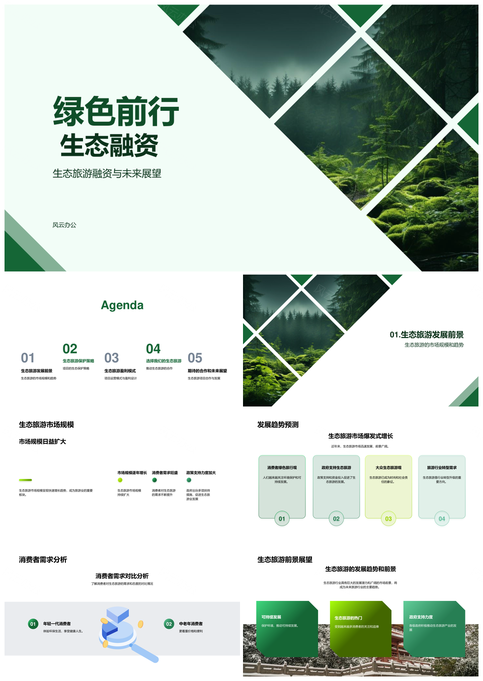风云办公提供的生态旅游融资与绿色森林发展趋势PPT模板,下载格式为pptx,一共28页,作品中文字及图均可以修改和编辑,图片更改请在作品中右键图片并更换,文字修改请直接点击文字进行修改。