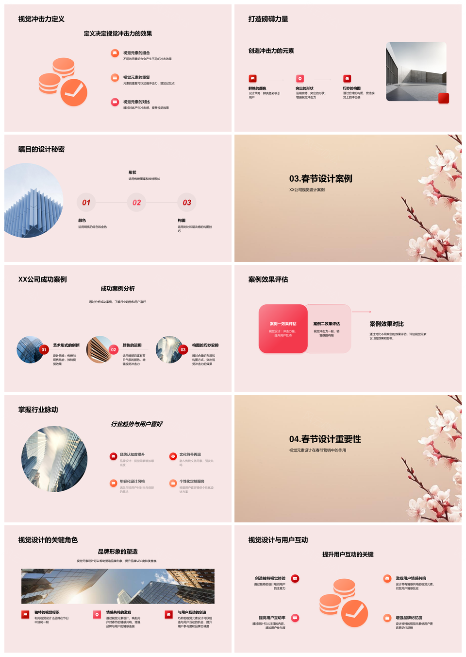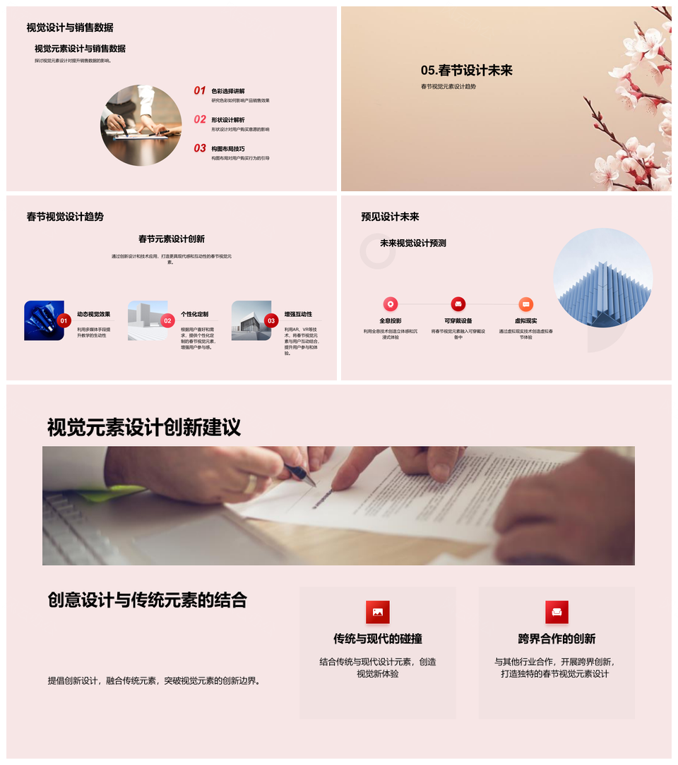 这是一张春节视觉元素设计文化融合营销冲击力趋势PPT模板,包含春节、视觉元素、设计、文化融合、营销、冲击力、趋势等主题内容,也可用作春节视觉元素设计文化融合、视觉元素设计文化融合营销、元素设计文化融合营销冲击力、设计文化融合营销冲击力趋势、春节视觉元素设计文化、视觉元素设计文化融合营销、元素设计文化融合营销冲击力、设计文化融合营销冲击力、春节视觉元素设计、视觉元素设计文化融合、元素设计文化融合营销、设计文化融合营销冲击力、文化融合营销冲击力趋势、春节视觉元素、视觉元素设计文化、元素设计文化融合等PPT场景使用。 风云办公提供的春节视觉元素设计文化融合营销冲击力趋势PPT模板,下载格式为pptx,一共23页,作品中文字及图均可以修改和编辑,图片更改请在作品中右键图片并更换,文字修改请直接点击文字进行修改。