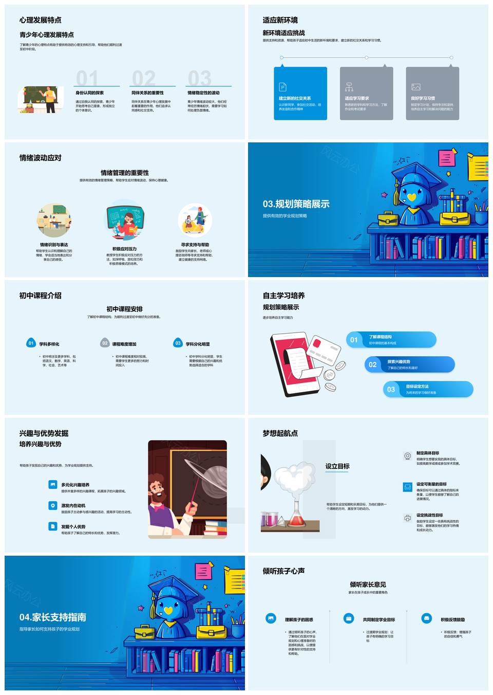 风云办公提供的初中生学业压力适应与心理发展PPT模板,下载格式为pptx,一共25页,作品中文字及图均可以修改和编辑,图片更改请在作品中右键图片并更换,文字修改请直接点击文字进行修改。