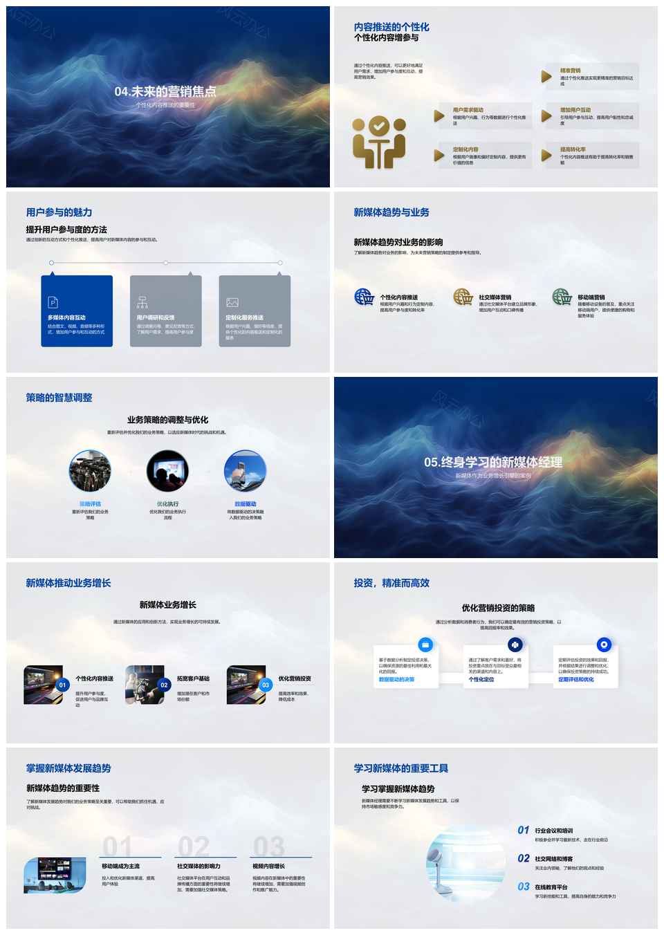 这是一张新媒体营销年度业务增长与用户参与总结PPT模板,包含新媒体营销、年度、业务增长、用户参与、总结等主题内容,也可用作新媒体营销年度业务增长与用户参与总结、新媒体营销年度业务增长、新媒体营销年度业务、新媒体营销业务增长用户参与、营销年度业务增长用户参与、年度业务增长用户参与总结、业务增长用户参与总结、新媒体营销用户参与总结、新媒体营销年度用户参与、年度业务增长与用户参与、新媒体营销业务增长、营销年度业务增长、年度业务增长用户、业务增长用户参与、用户参与总结等PPT场景使用。 风云办公提供的新媒体营销年度业务增长与用户参与总结PPT模板,下载格式为pptx,一共28页,作品中文字及图均可以修改和编辑,图片更改请在作品中右键图片并更换,文字修改请直接点击文字进行修改。