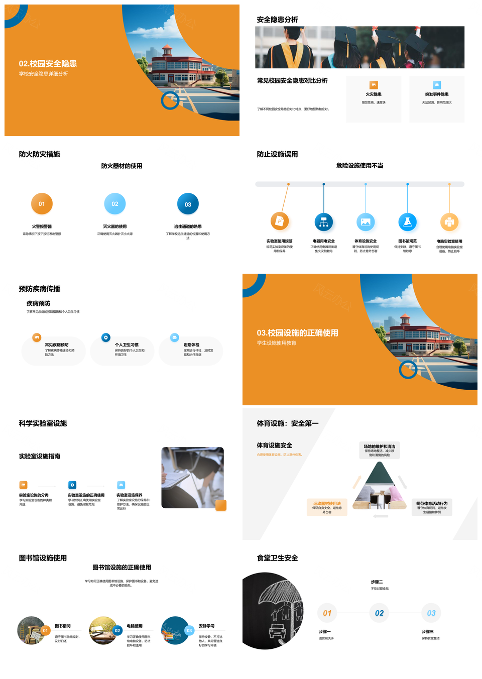 这是一张校园安全教育防范隐患制度设施建筑防灾自救PPT模板,包含校园、安全教育、防范、隐患、制度、设施、建筑、防灾、自救等主题内容,也可用作校园安全教育防范隐患制度、安全教育防范隐患制度、教育防范隐患制度设施、防范隐患制度设施建筑、隐患制度设施建筑防灾、制度设施建筑防灾自救、校园安全设施防灾自救、安全教育防灾自救制度、教育防灾自救设施建筑、防灾自救制度设施建筑、校园安全防范教育制度、安全防范教育制度设施、防范教育制度设施建筑、校园隐患制度设施防灾、隐患制度设施防灾自救等PPT场景使用。 风云办公提供的校园安全教育防范隐患制度设施建筑防灾自救PPT模板,下载格式为pptx,一共28页,作品中文字及图均可以修改和编辑,图片更改请在作品中右键图片并更换,文字修改请直接点击文字进行修改。