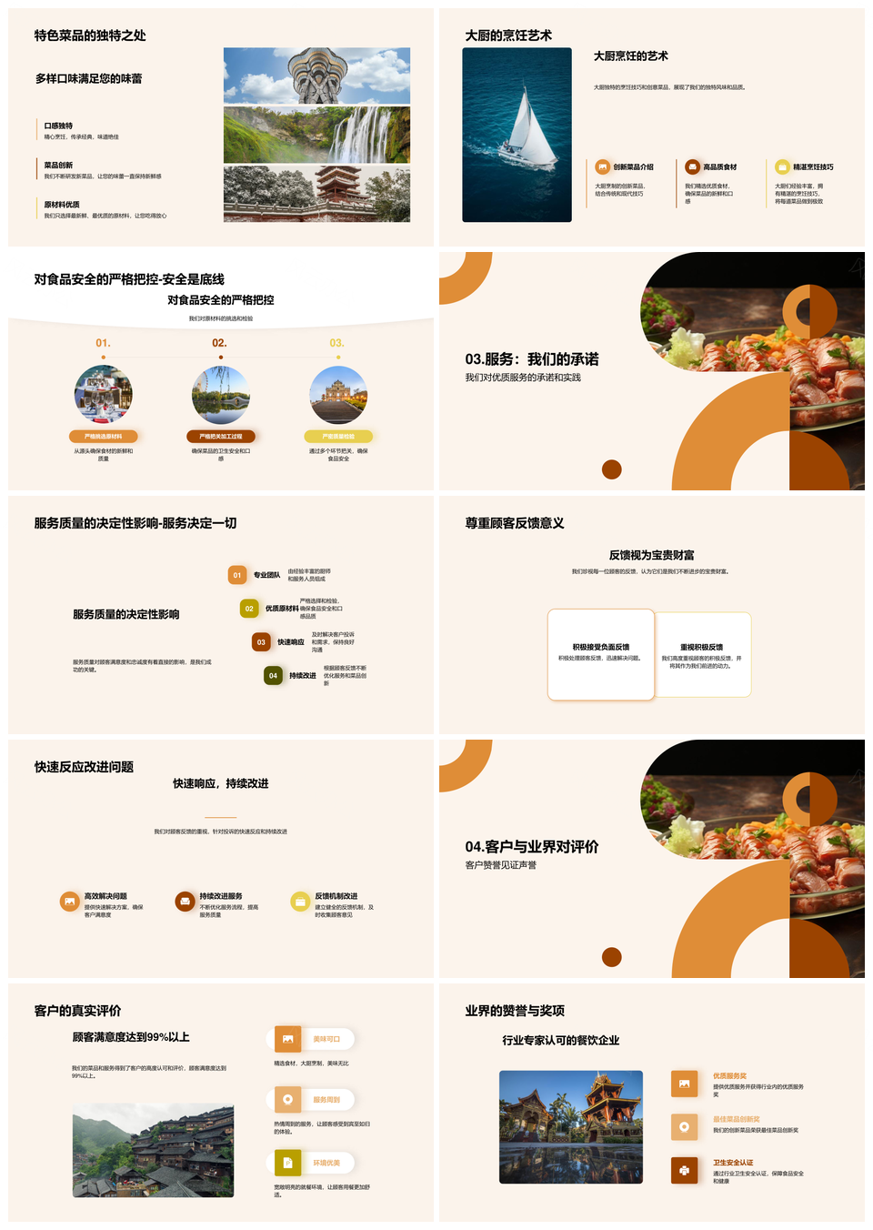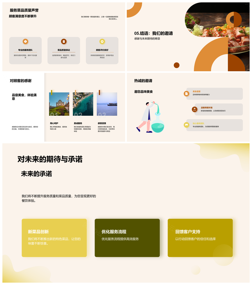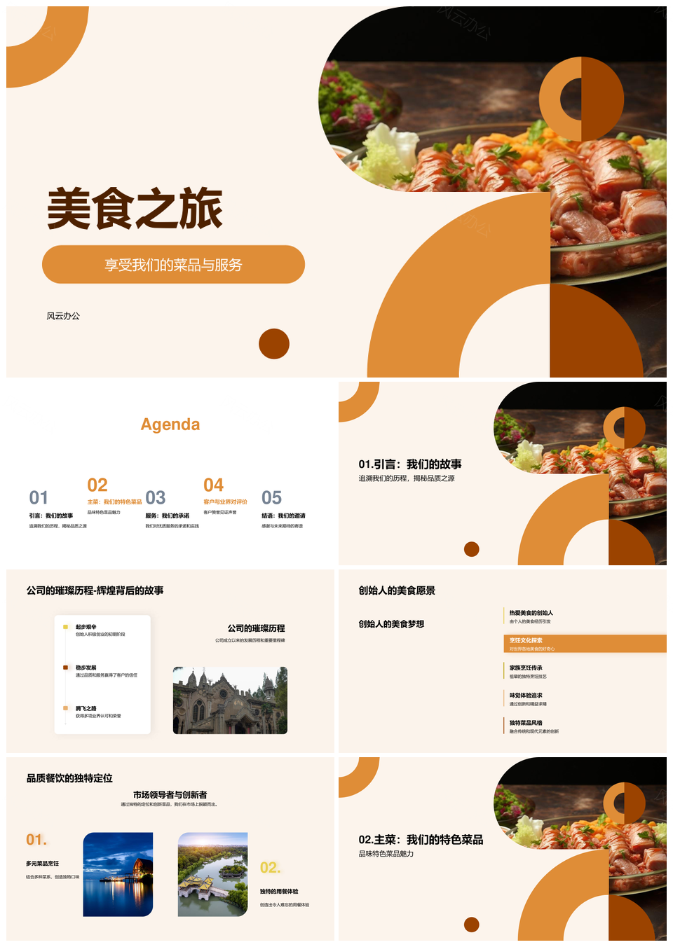 风云办公提供的餐饮企业美食之旅特色安全服务发展史PPT模板,下载格式为pptx,一共23页,作品中文字及图均可以修改和编辑,图片更改请在作品中右键图片并更换,文字修改请直接点击文字进行修改。