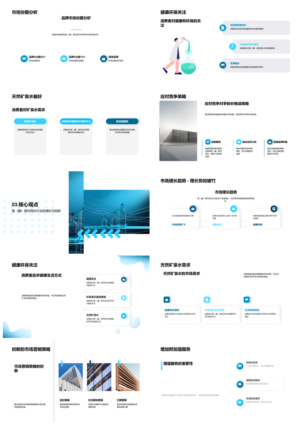 这是一张健康创新驱动瓶装水行业规模增长竞争分析PPT模板,包含健康、创新、驱动、瓶装水、行业、规模、增长、竞争、分析等主题内容,也可用作健康创新驱动瓶装水、创新驱动瓶装水行业、驱动瓶装水行业规模、瓶装水行业规模增长、行业规模增长竞争、规模增长竞争分析、健康创新驱动行业、驱动行业规模增长、行业增长竞争分析、健康创新驱动增长、创新驱动行业竞争、驱动行业竞争分析、瓶装水行业竞争分析、健康创新行业规模、健康规模增长竞争等PPT场景使用。 风云办公提供的健康创新驱动瓶装水行业规模增长竞争分析PPT模板,下载格式为pptx,一共23页,作品中文字及图均可以修改和编辑,图片更改请在作品中右键图片并更换,文字修改请直接点击文字进行修改。