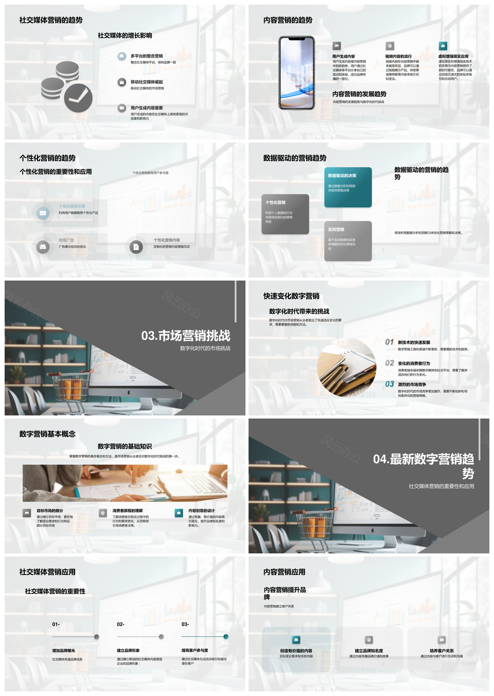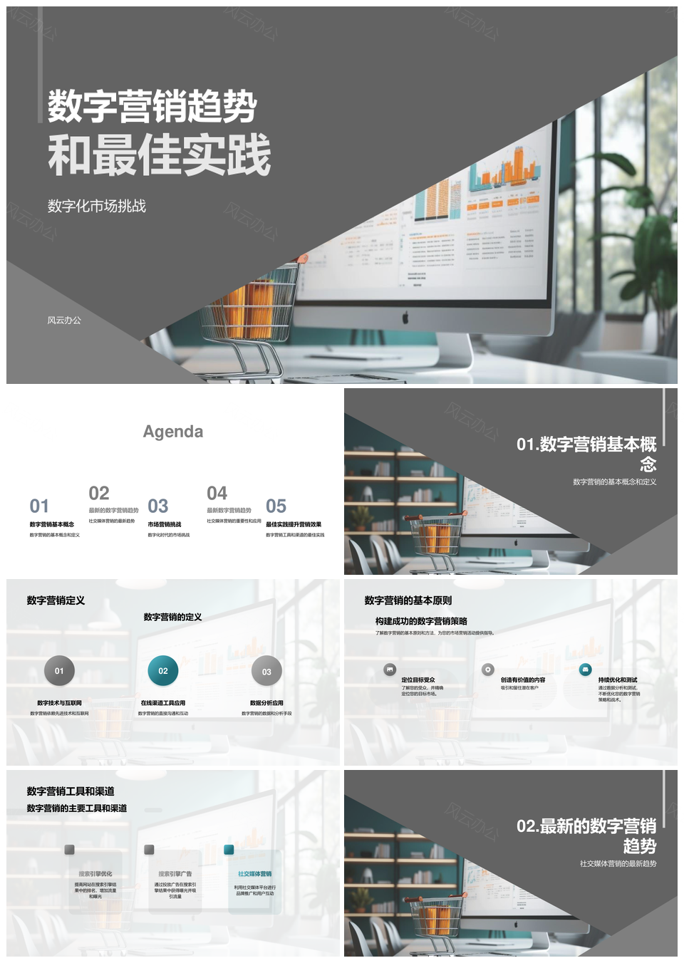 风云办公提供的数字营销趋势挑战工具渠道最佳实践PPT模板,下载格式为pptx,一共23页,作品中文字及图均可以修改和编辑,图片更改请在作品中右键图片并更换,文字修改请直接点击文字进行修改。