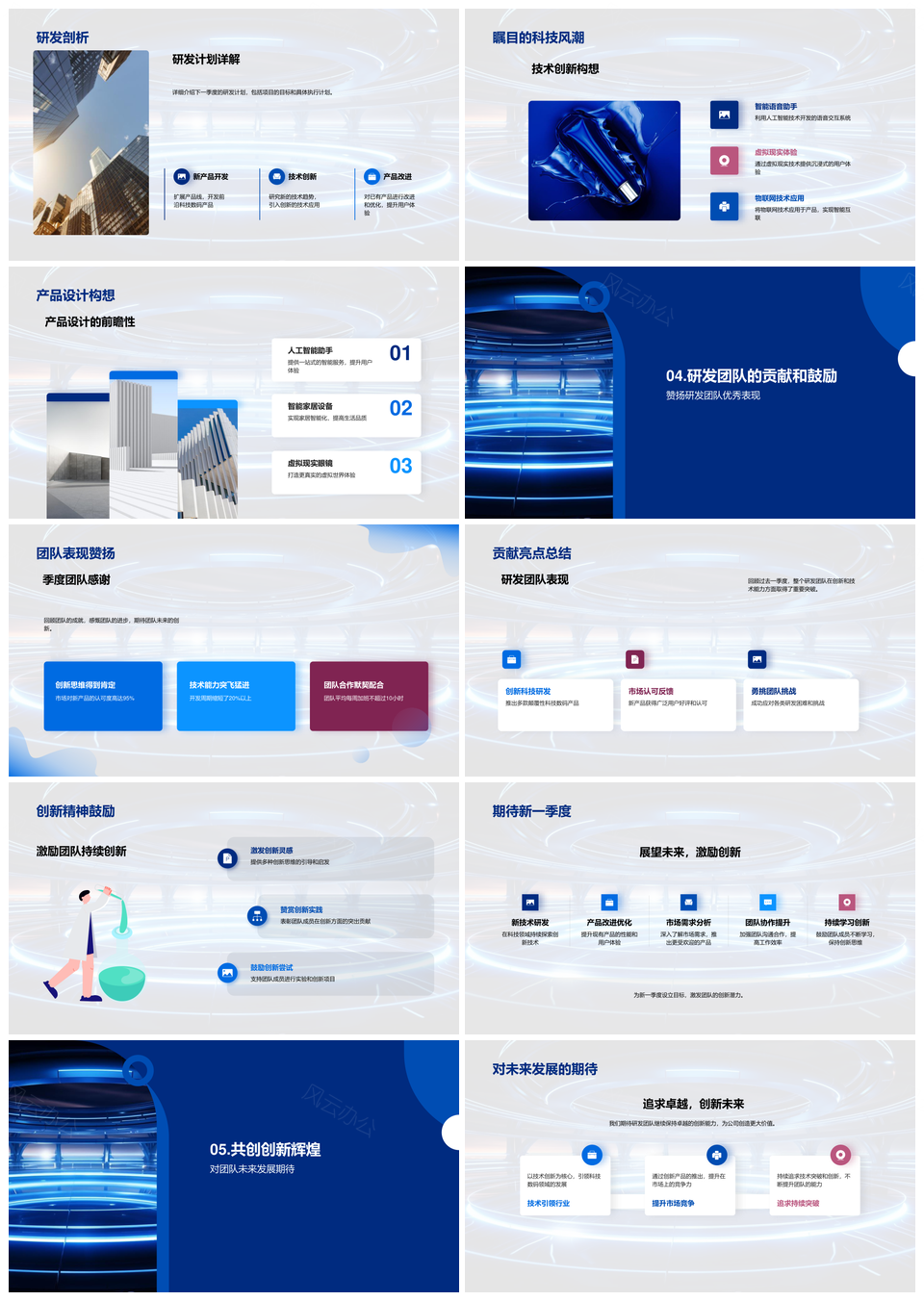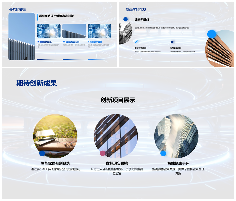 这是一张科技创新季报研发成果新品展望市场案例PPT模板,包含科技创新、季报、研发成果、新品、展望、市场、案例等主题内容,也可用作科技创新季报研发成果新品、季报研发成果新品展望、研发成果新品展望市场案例、科技创新季报研发成果、季报研发成果新品、研发成果新品展望、新品展望市场案例、科技创新季报、季报研发成果、研发成果新品、新品展望、展望市场案例、科技创新研发成果、科技创新新品、研发成果展望等PPT场景使用。 风云办公提供的科技创新季报研发成果新品展望市场案例PPT模板,下载格式为pptx,一共31页,作品中文字及图均可以修改和编辑,图片更改请在作品中右键图片并更换,文字修改请直接点击文字进行修改。