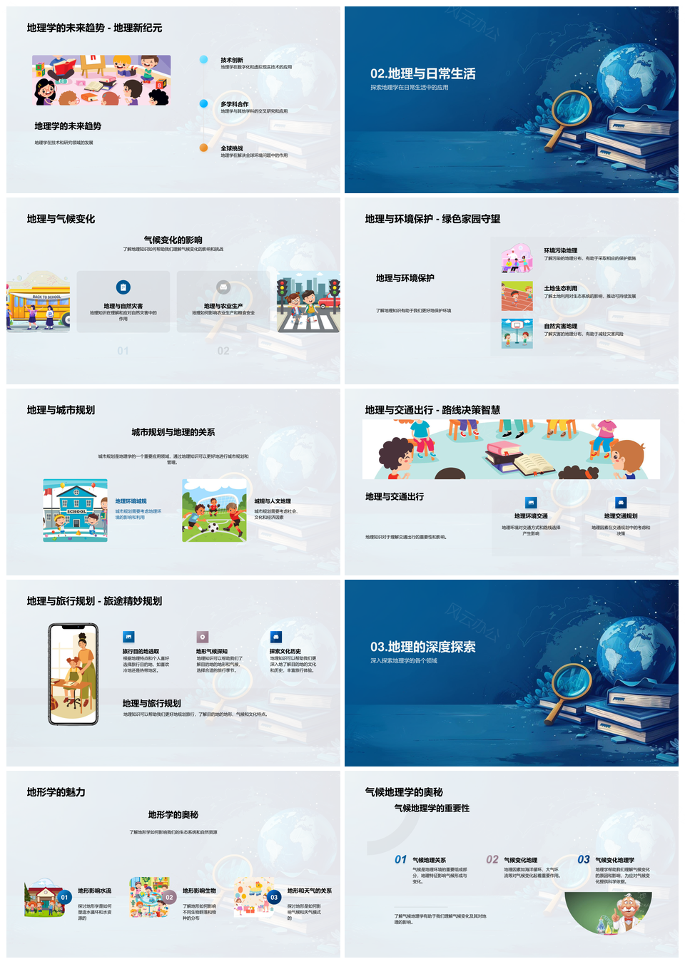 地理知识教育应用与城市规划气候变化解析PPT模板推荐