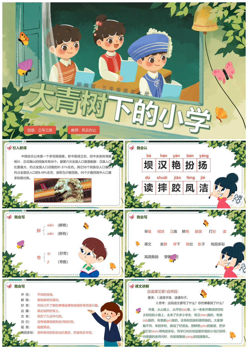 部编版三年级语文清新大青树下小学课件PPT模板推荐