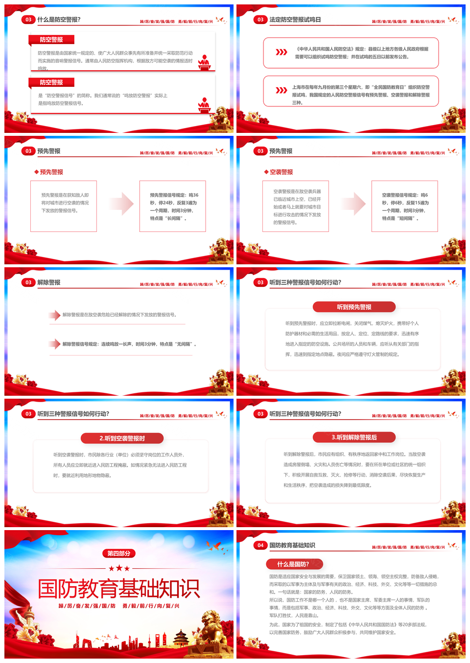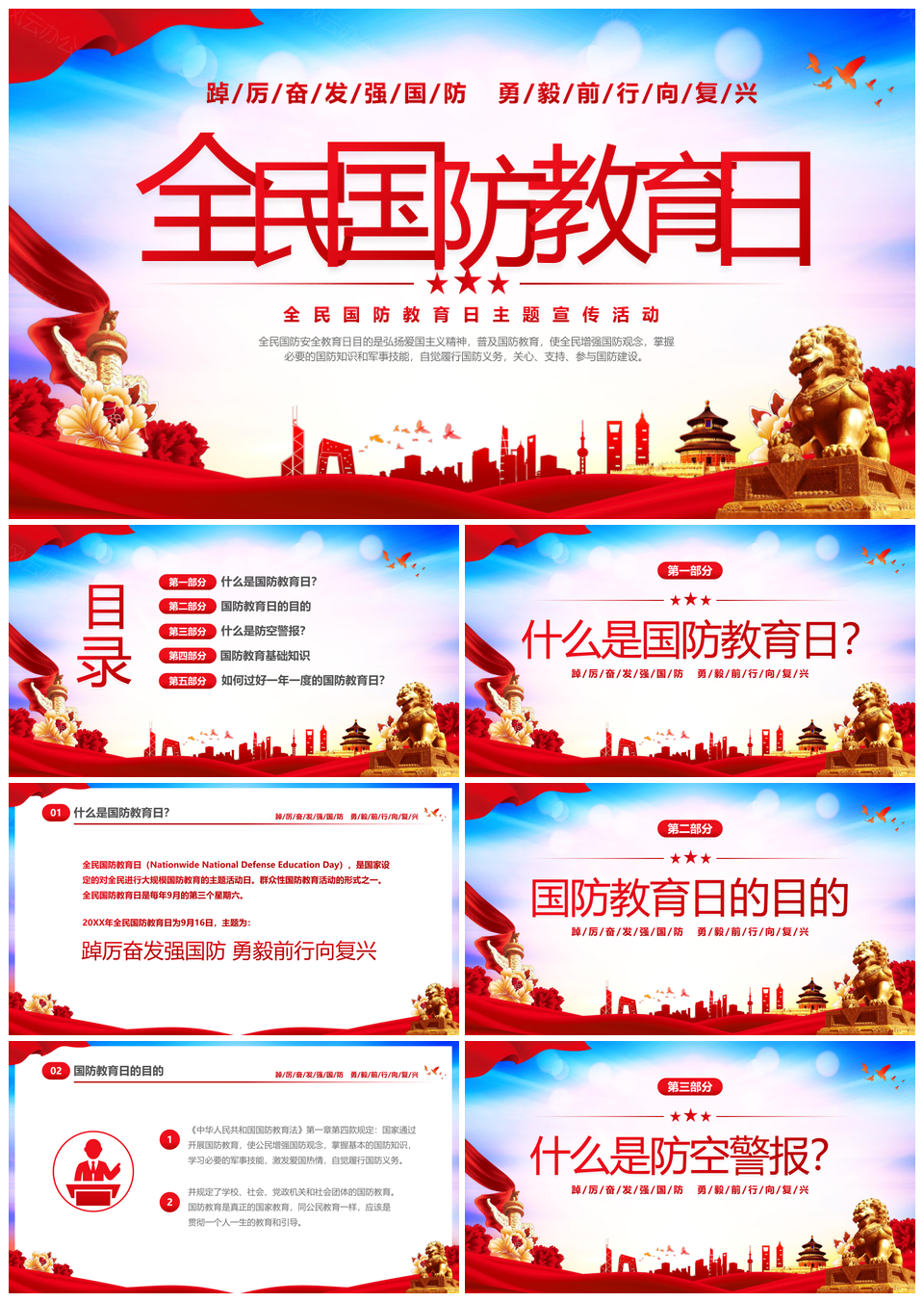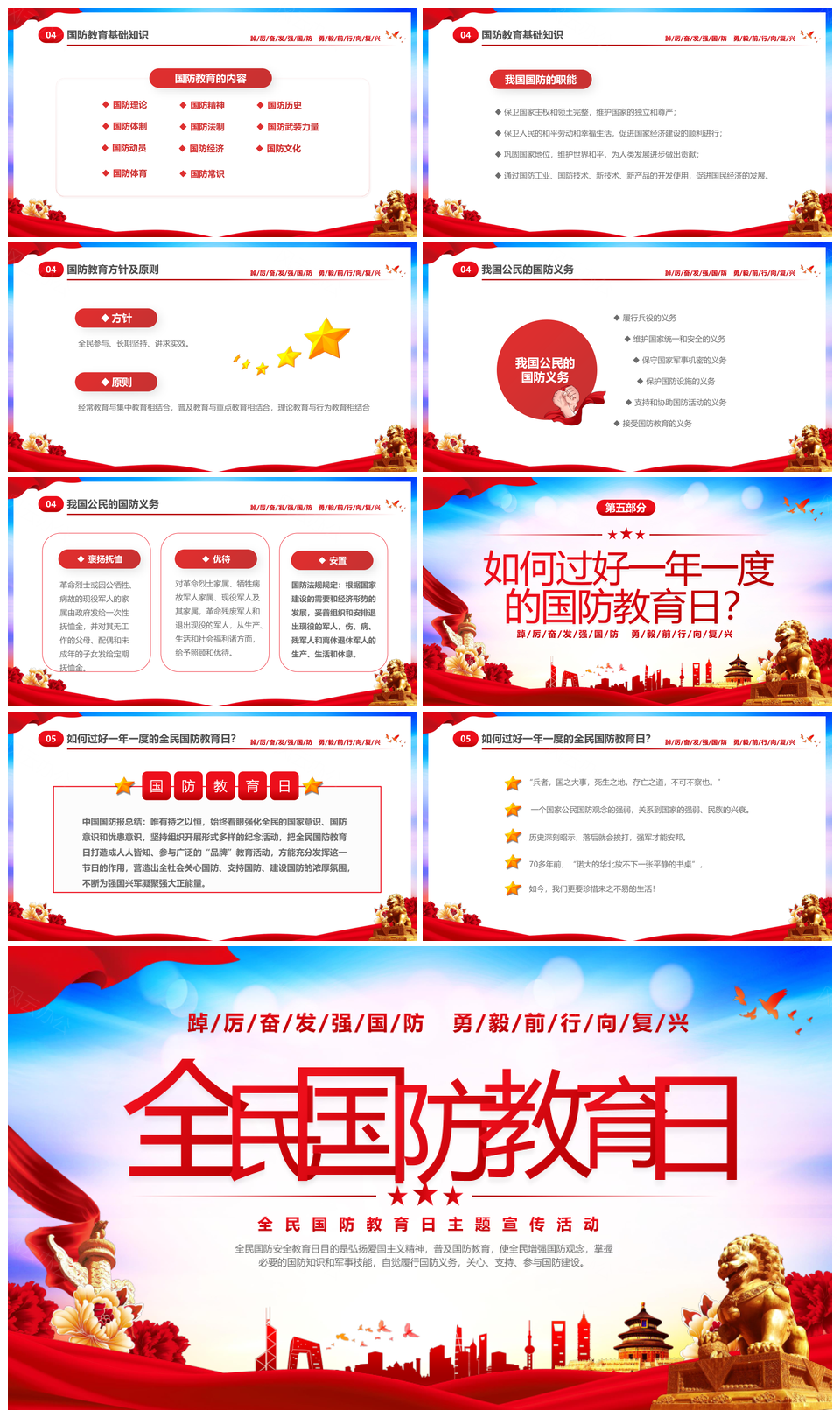 红色党建强国防全民国防教育日2023复兴PPT模板推荐