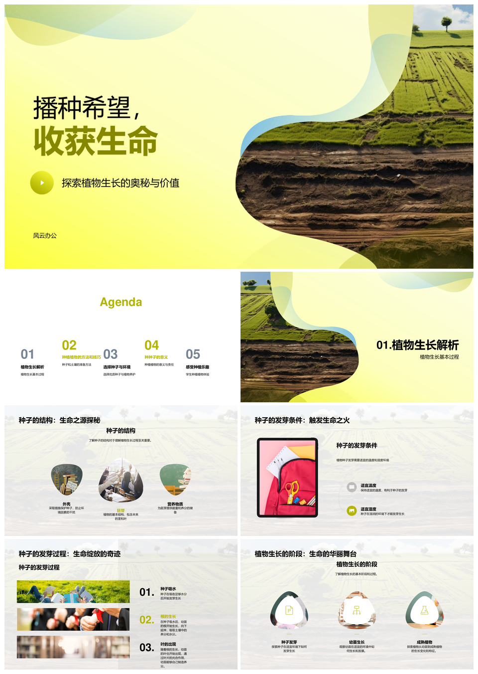 播种希望教育幼苗生长收获生命阳光土壤PPT模板推荐