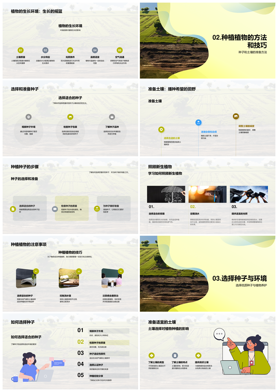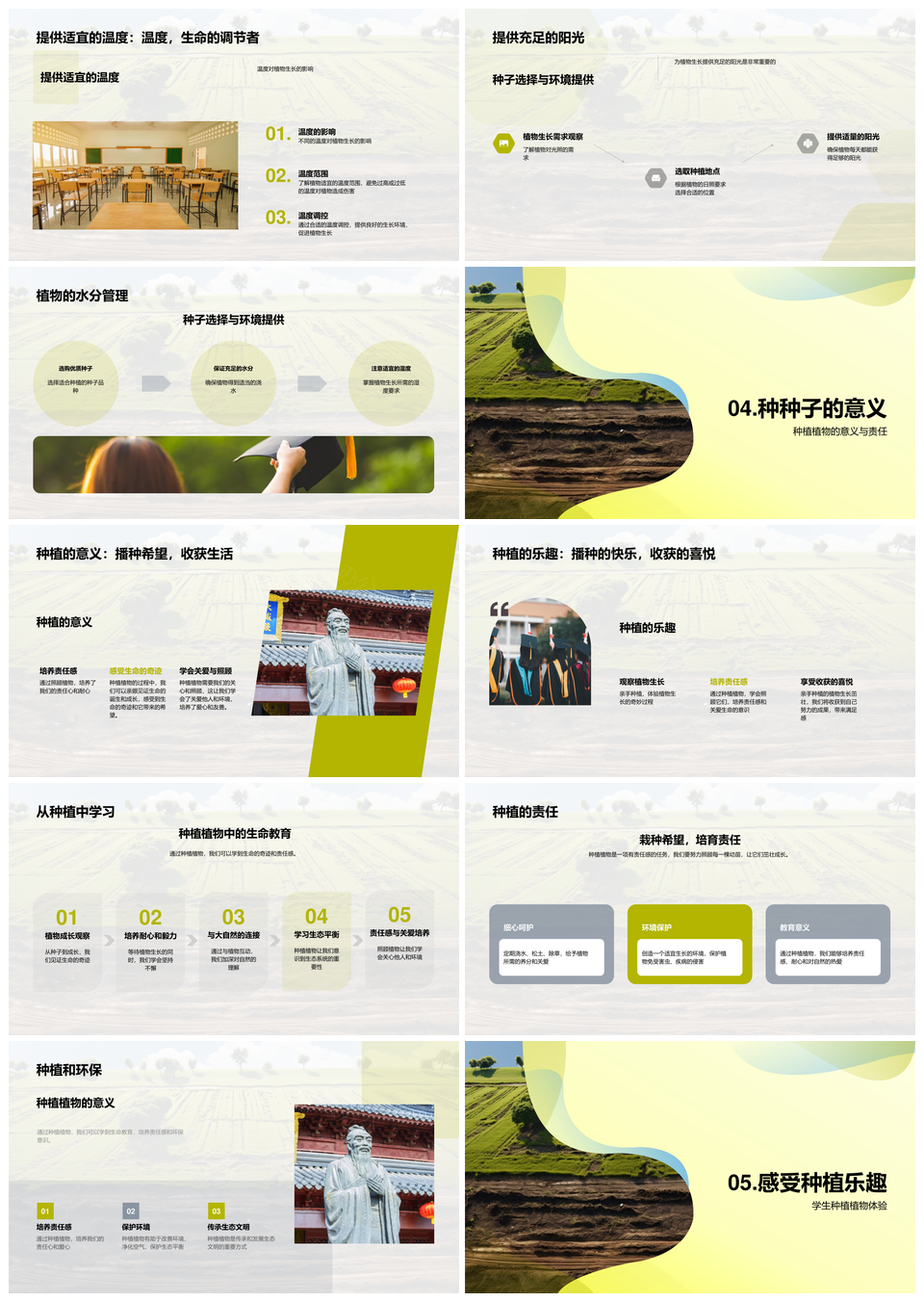这是一张播种希望教育幼苗生长收获生命阳光土壤PPT模板,包含希望、教育、幼苗、生长、收获、生命、阳光、土壤等主题内容,也可用作播种希望教育幼苗、希望教育幼苗生长、教育幼苗生长收获、幼苗生长收获生命、生长收获生命阳光、收获生命阳光土壤、播种希望教育、希望教育幼苗、教育幼苗生长、幼苗生长收获、生长收获生命、收获生命阳光、生命阳光土壤、播种希望、希望教育等PPT场景使用。 风云办公提供的播种希望教育幼苗生长收获生命阳光土壤PPT模板,下载格式为pptx,一共33页,作品中文字及图均可以修改和编辑,图片更改请在作品中右键图片并更换,文字修改请直接点击文字进行修改。