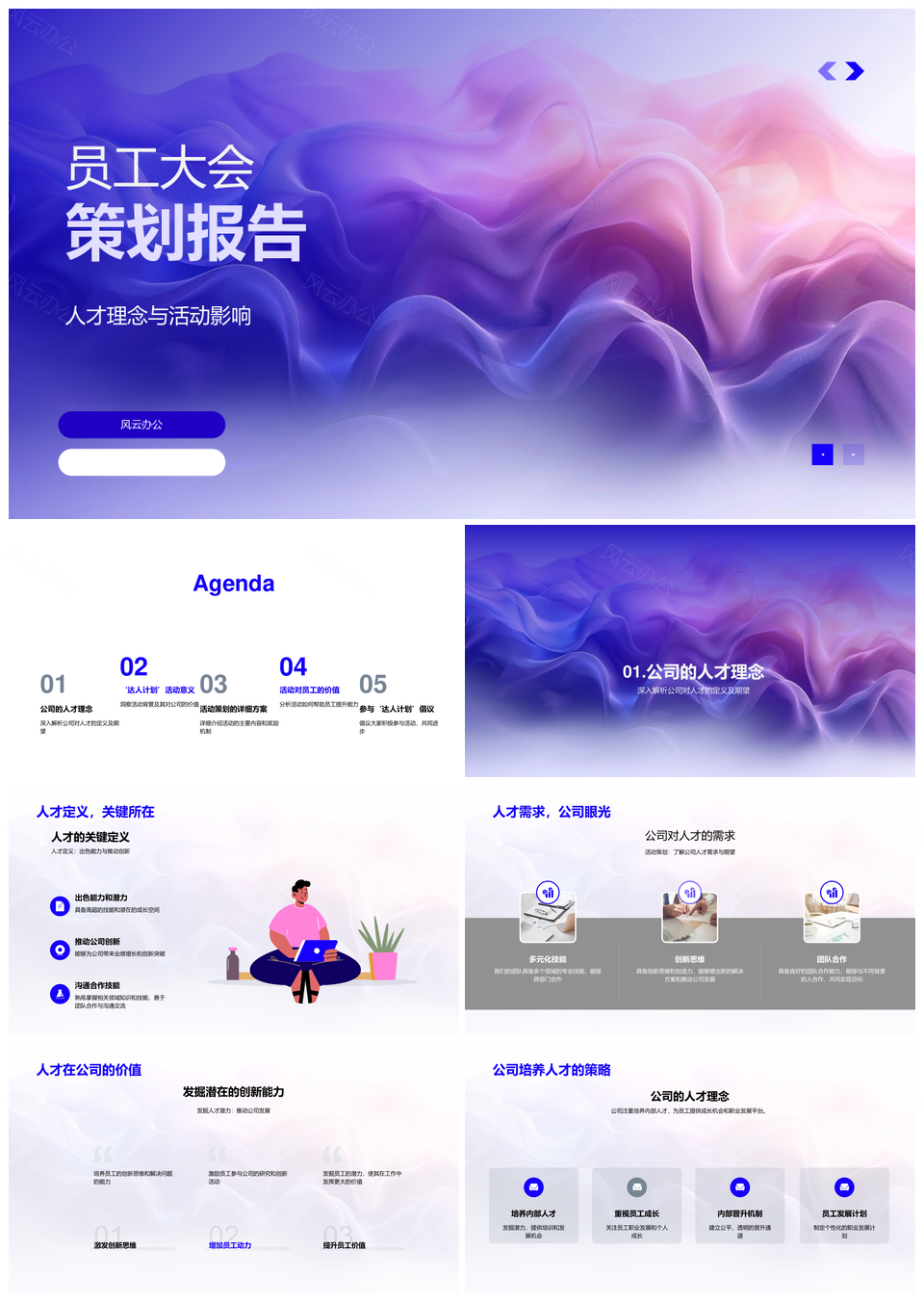 风云办公提供的员工大会人才创新达人计划策划报告PPT模板,下载格式为pptx,一共28页,作品中文字及图均可以修改和编辑,图片更改请在作品中右键图片并更换,文字修改请直接点击文字进行修改。