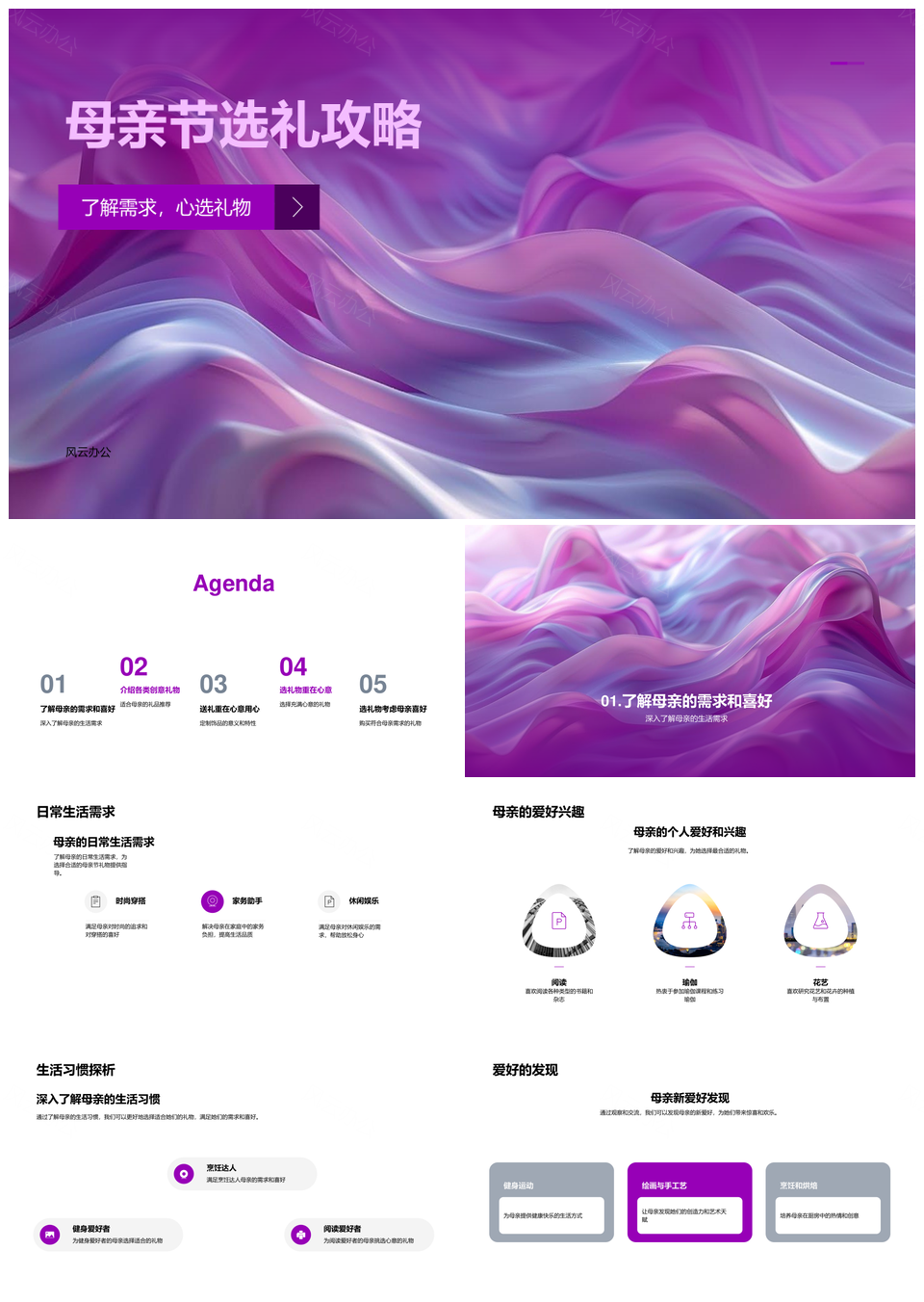 母亲节贴心礼物推荐按需选健康饰品手工艺品PPT模板推荐