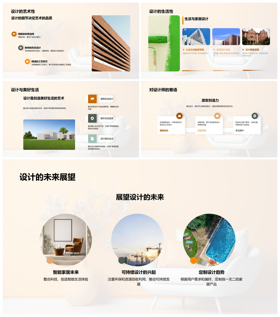 这是一张家居生活艺术设计师理念美好生活设计大会现代家具PPT模板,包含家居、生活、艺术、设计师、理念、美好生活、设计、大会、现代、家具等主题内容,也可用作家居生活艺术设计师理念美好生活、设计师理念美好生活设计大会、理念美好生活设计大会现代家具、家居生活艺术设计师、艺术设计师理念、设计师理念美好生活、理念美好生活设计大会、美好生活设计大会现代家具、艺术设计师、设计师理念、理念美好生活、美好生活设计大会、设计大会现代家具、家居生活艺术、艺术理念等PPT场景使用。 风云办公提供的家居生活艺术设计师理念美好生活设计大会现代家具PPT模板,下载格式为pptx,一共33页,作品中文字及图均可以修改和编辑,图片更改请在作品中右键图片并更换,文字修改请直接点击文字进行修改。