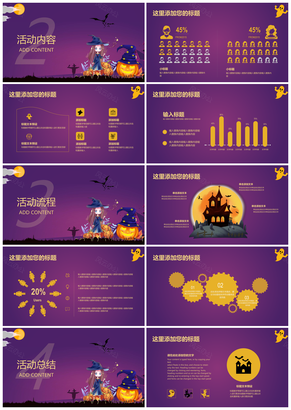 这是一张万圣节活动策划PPT模板,包含万圣节、活动、策划等主题内容,也可用作万圣节、活动、策划 万圣节活动策划、万圣节活动、万圣节策划、活动策划等PPT场景使用。 风云办公提供的万圣节活动策划PPT模板,下载格式为pptx,一共1页,作品中文字及图均可以修改和编辑,图片更改请在作品中右键图片并更换,文字修改请直接点击文字进行修改。
