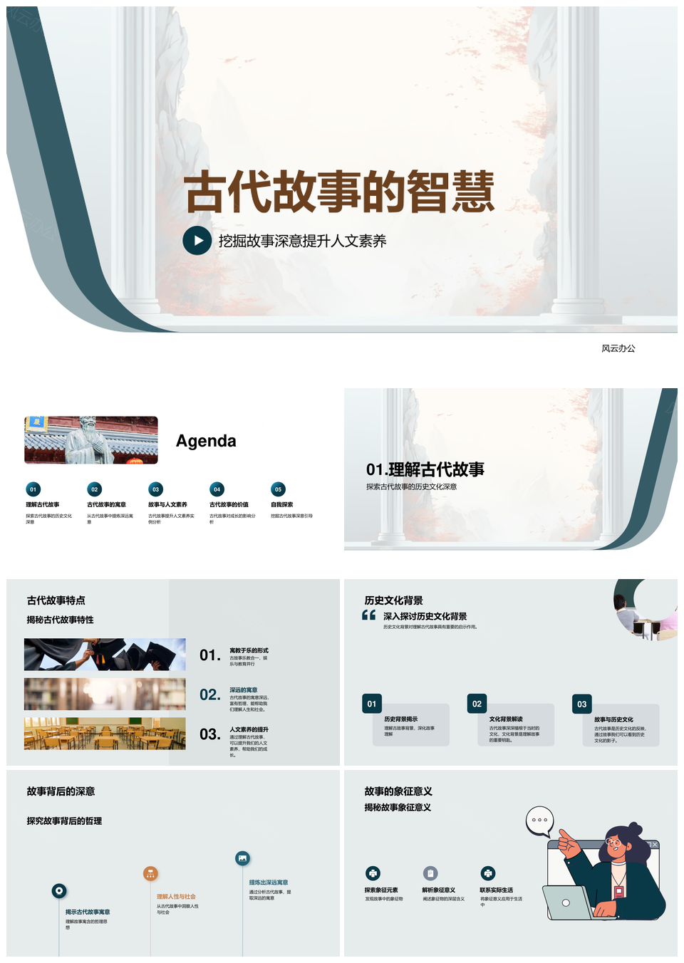 这是一张古卷深意映人文哲思PPT模板,包含古卷、深意、人文、哲思等主题内容,也可用作古卷深意人文哲思、古卷深意人文、古卷深意哲思、古卷人文哲思、深意人文哲思、古卷深意、古卷人文、古卷哲思、深意人文、深意哲思、人文哲思、人文古卷深意、人文哲思古卷、哲思人文古卷、哲思古卷深意等PPT场景使用。 风云办公提供的古卷深意映人文哲思PPT模板,下载格式为pptx,一共33页,作品中文字及图均可以修改和编辑,图片更改请在作品中右键图片并更换,文字修改请直接点击文字进行修改。