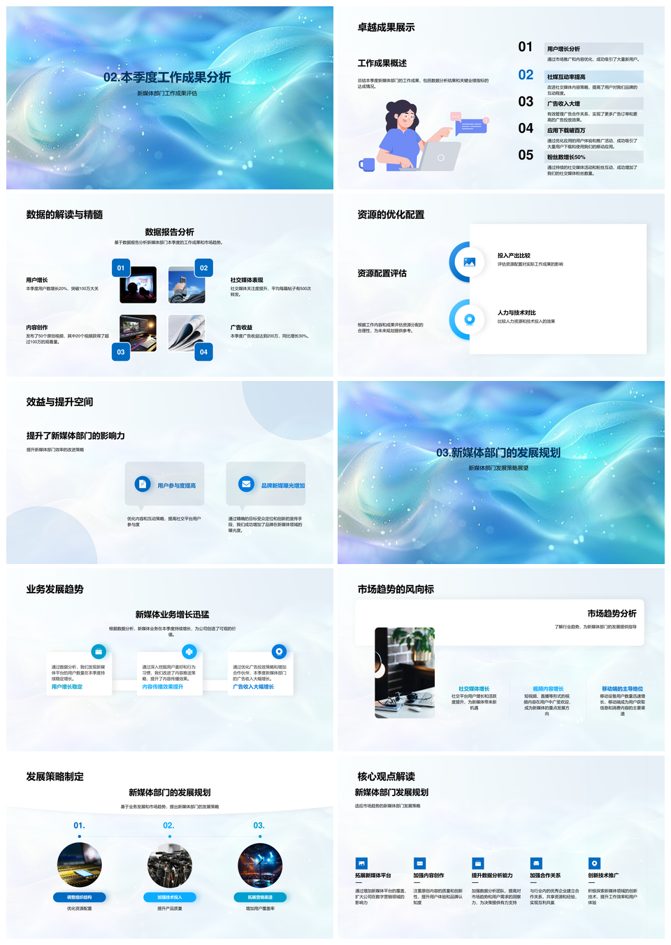 新媒体部门季度成果策略资源趋势数据架构职责汇报PPT模板推荐