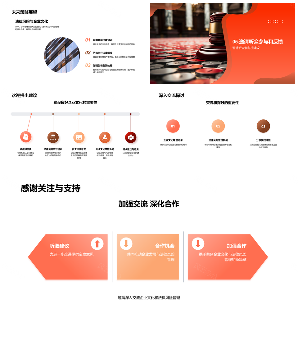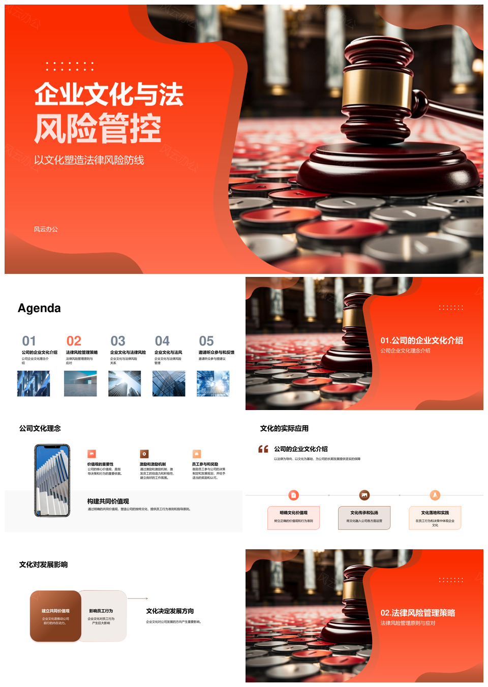 风云办公提供的企业法律风险管控文化建设PPT模板,下载格式为pptx,一共23页,作品中文字及图均可以修改和编辑,图片更改请在作品中右键图片并更换,文字修改请直接点击文字进行修改。