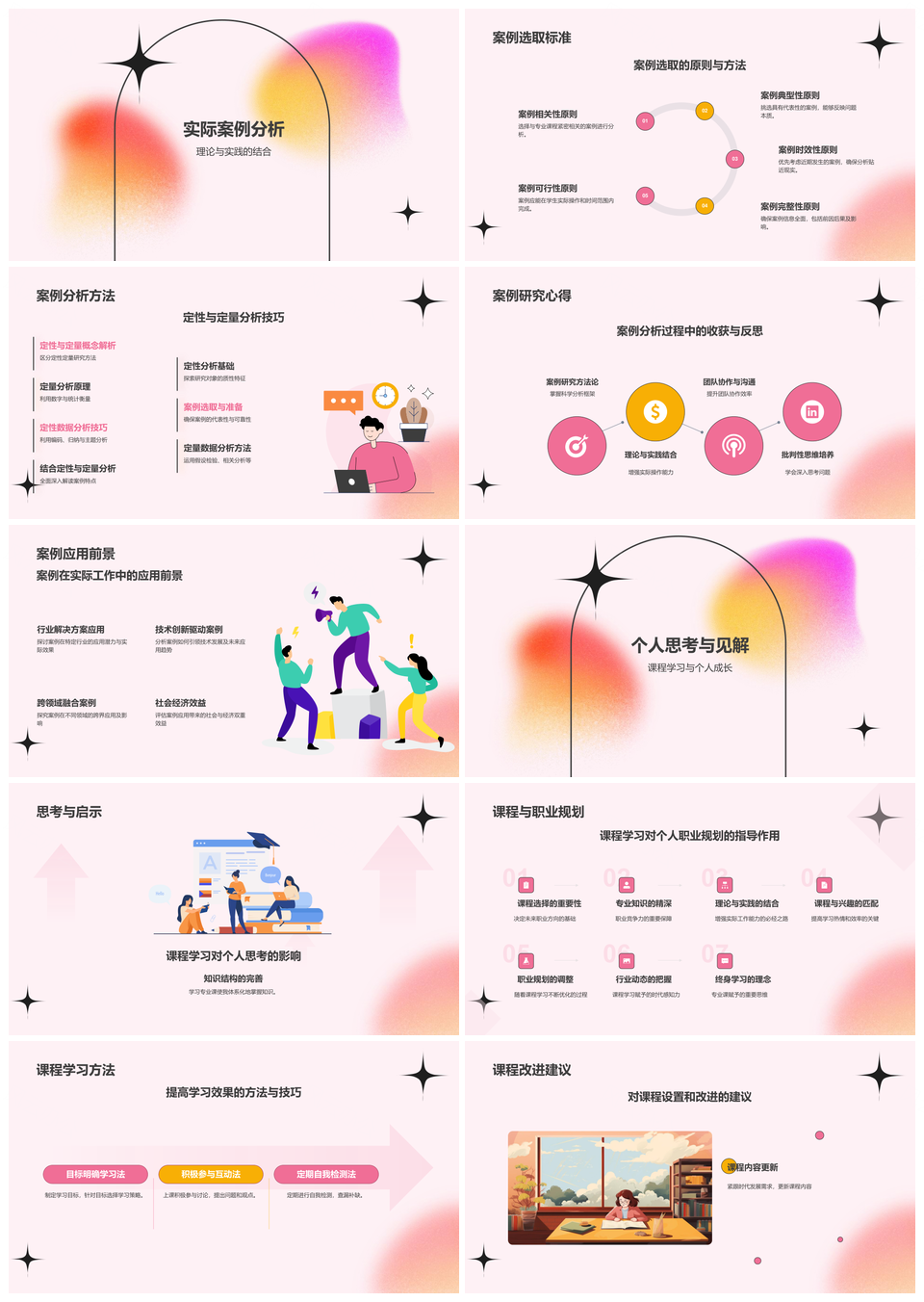 风云办公提供的弥散粉大学生专业汇报学业成果展示PPT模板,下载格式为pptx,一共18页,作品中文字及图均可以修改和编辑,图片更改请在作品中右键图片并更换,文字修改请直接点击文字进行修改。