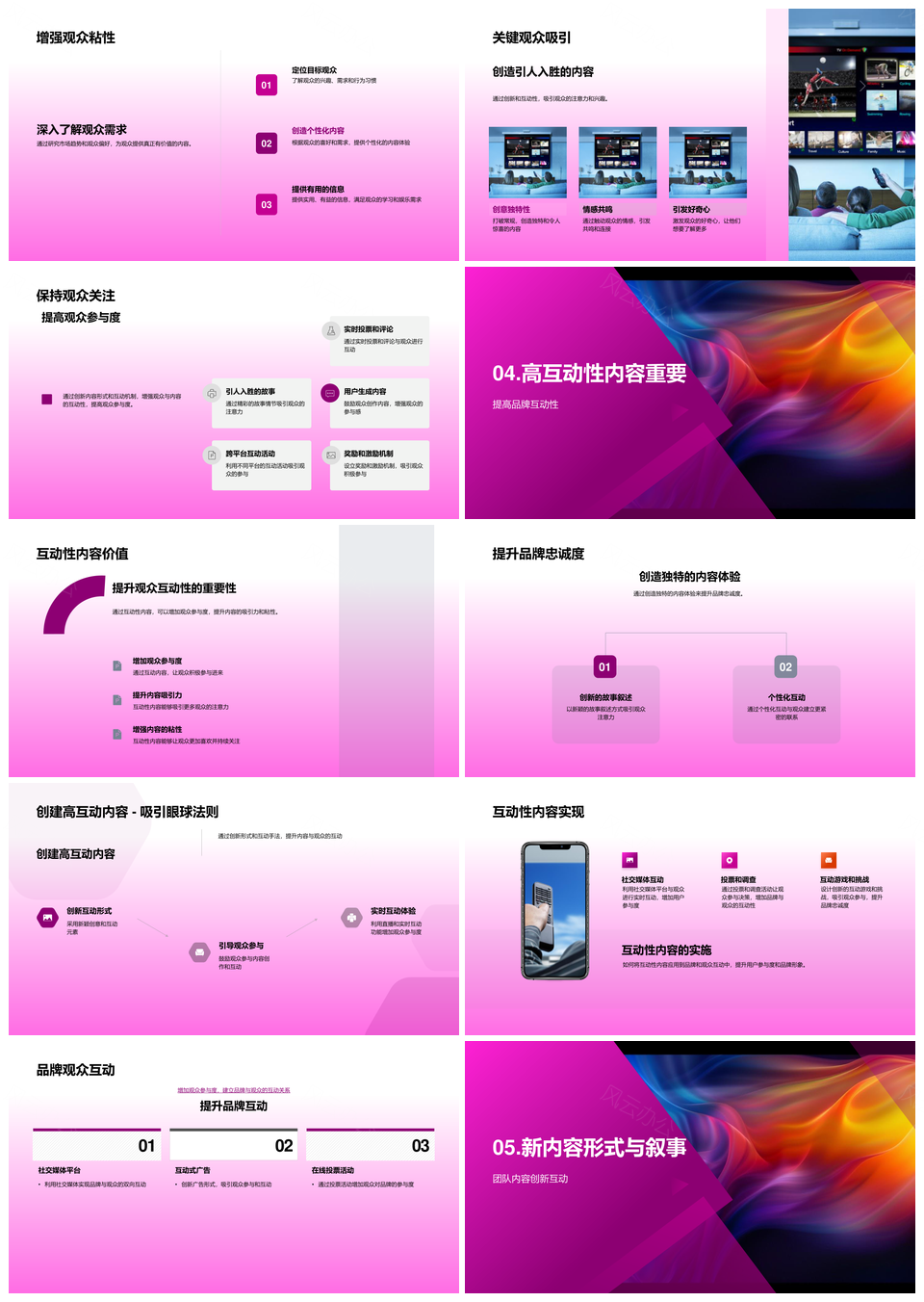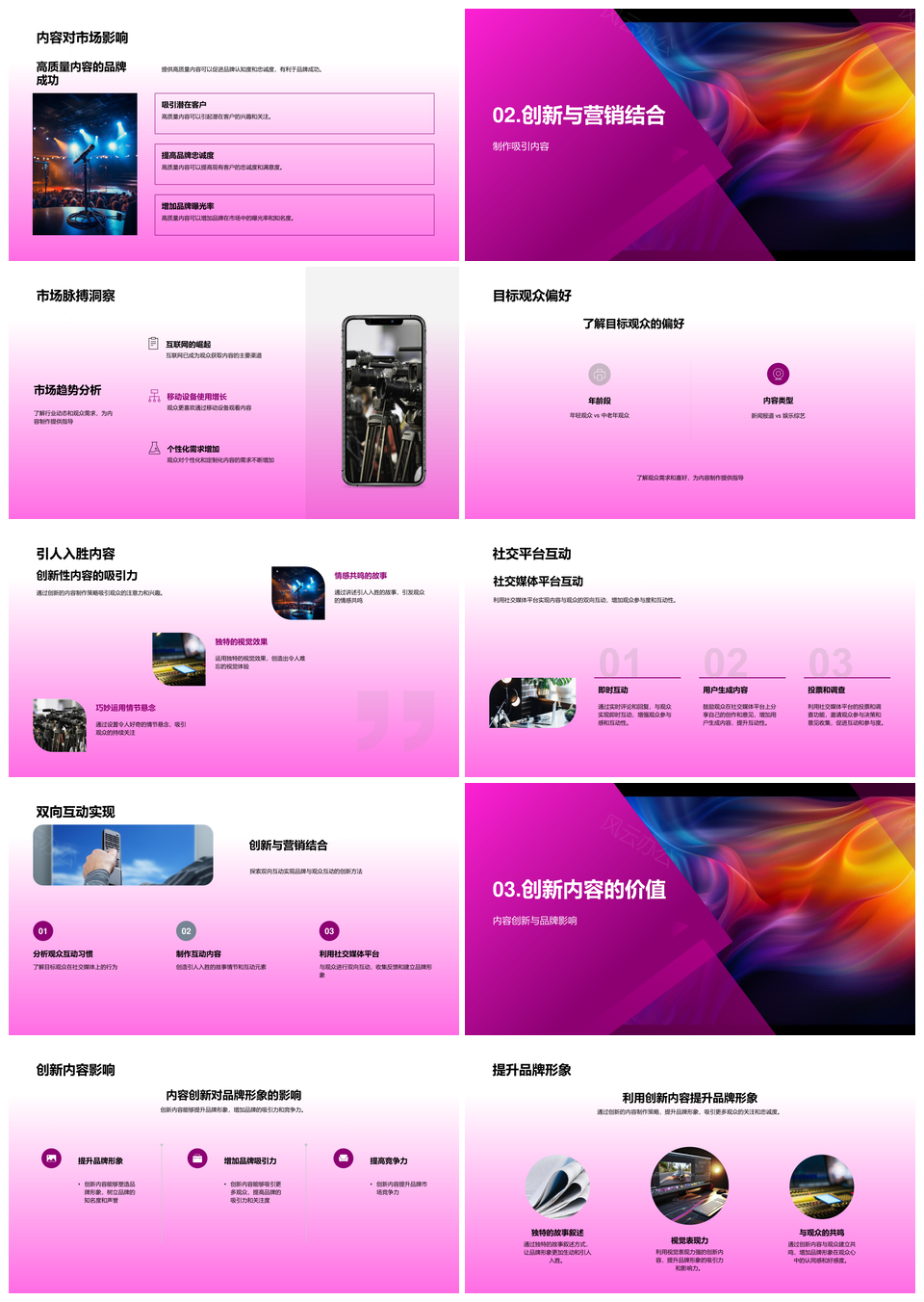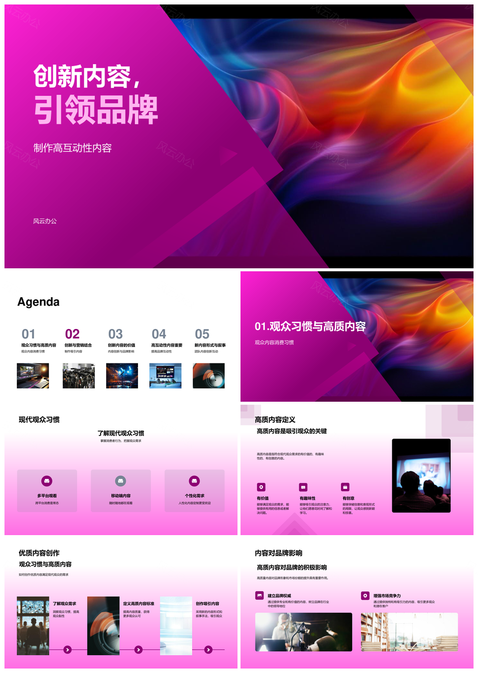 风云办公提供的创新高互动内容引领品牌活力趋势PPT模板,下载格式为pptx,一共33页,作品中文字及图均可以修改和编辑,图片更改请在作品中右键图片并更换,文字修改请直接点击文字进行修改。