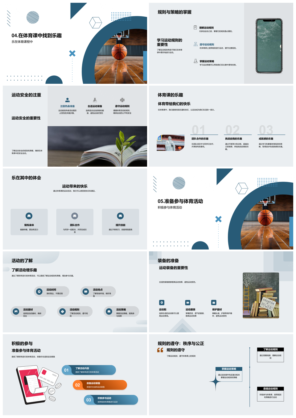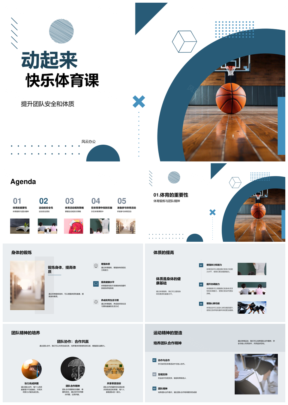 体育课程篮球足球排球运动技能团队协作健康压力探索PPT模板