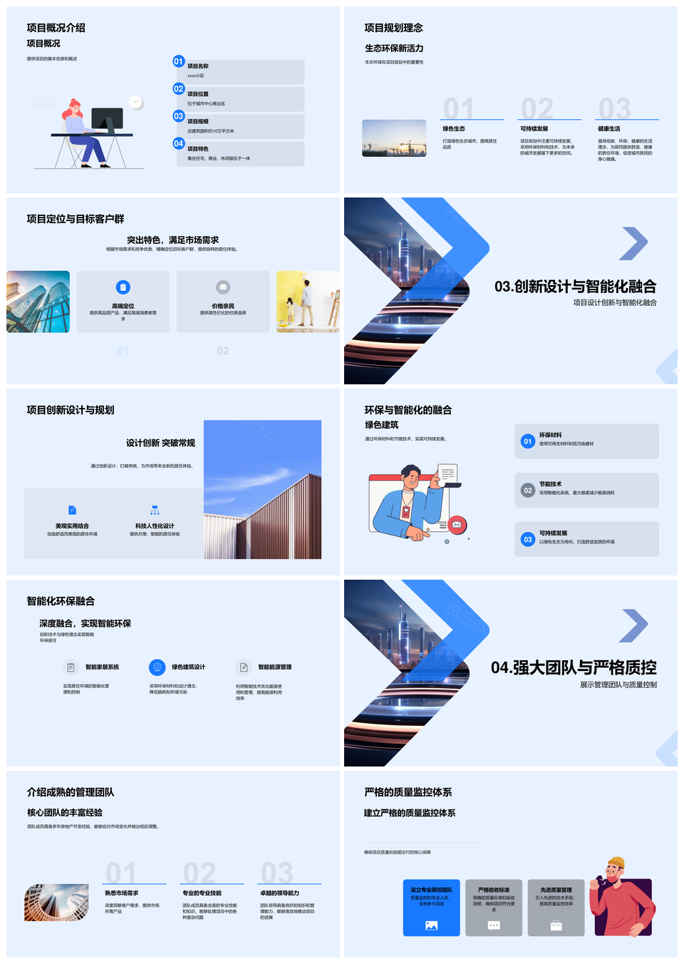 风云办公提供的未来式智能环保房产规划创新优势PPT模板,下载格式为pptx,一共23页,作品中文字及图均可以修改和编辑,图片更改请在作品中右键图片并更换,文字修改请直接点击文字进行修改。