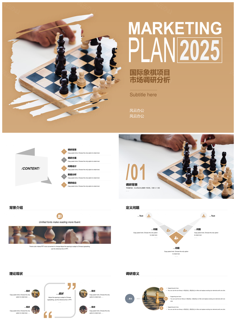 风云办公提供的2025国际象棋项目市场调研分析PPT模板,下载格式为pptx,一共28页,作品中文字及图均可以修改和编辑,图片更改请在作品中右键图片并更换,文字修改请直接点击文字进行修改。