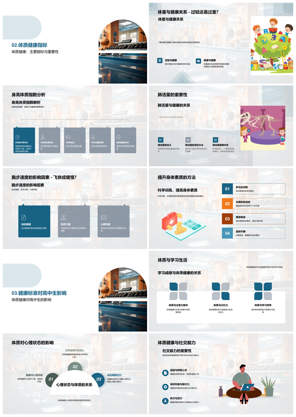 高中生体质健康标准身体质量肺活量跑步解析PPT模板推荐