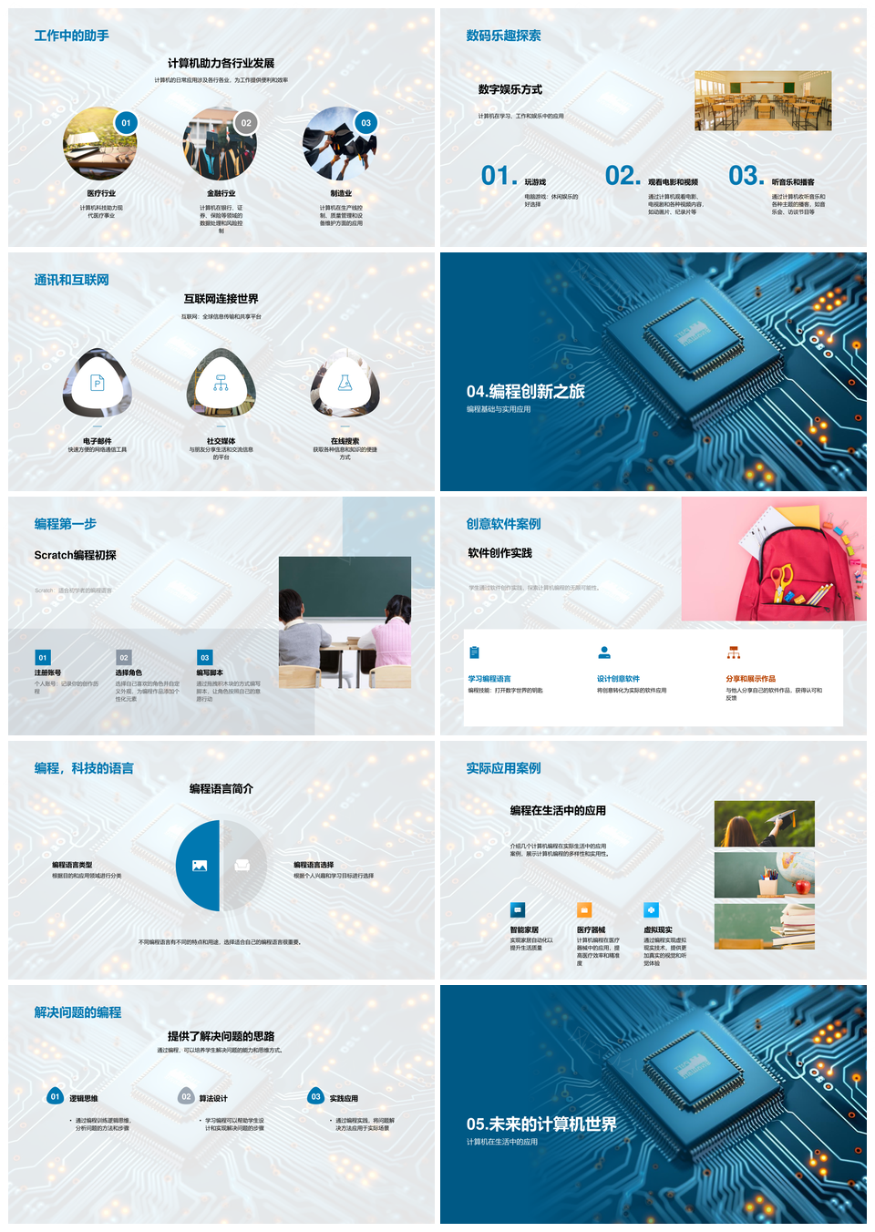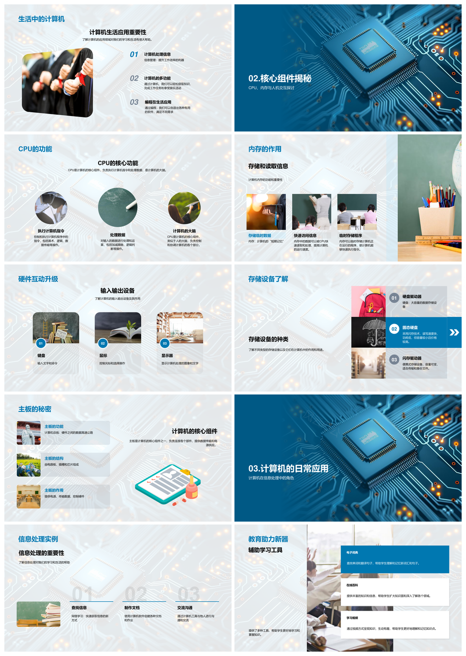 这是一张计算机CPU内存编程与半导体信息处理PPT模板,包含计算机、CPU、内存、编程、半导体、信息处理等主题内容,也可用作计算机CPU内存编程、CPU内存编程半导体、内存编程半导体信息处理、计算机CPU内存、CPU内存编程、内存编程半导体、编程半导体信息处理、计算机CPU、CPU内存、内存编程、编程半导体、半导体信息处理、计算机编程、CPU编程、编程信息处理等PPT场景使用。 风云办公提供的计算机CPU内存编程与半导体信息处理PPT模板,下载格式为pptx,一共33页,作品中文字及图均可以修改和编辑,图片更改请在作品中右键图片并更换,文字修改请直接点击文字进行修改。