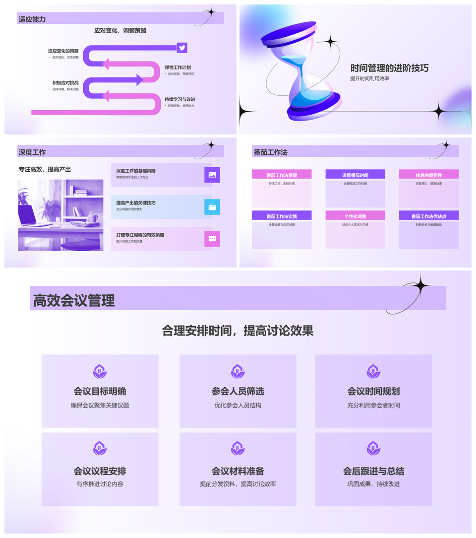 这是一张高效时间管理方法技巧提升工作计划安排PPT模板,包含高效、时间管理、方法、技巧、提升、工作、计划、安排等主题内容,也可用作高效时间管理方法技巧提升、高效时间管理方法技巧、时间管理方法技巧提升、时间管理方法技巧、高效时间管理方法、时间管理技巧提升、高效时间管理技巧、高效方法技巧提升、方法技巧提升工作、高效时间管理提升、时间管理方法提升、时间管理技巧、高效工作计划安排、提升工作计划安排、高效方法技巧等PPT场景使用。 风云办公提供的高效时间管理方法技巧提升工作计划安排PPT模板,下载格式为pptx,一共23页,作品中文字及图均可以修改和编辑,图片更改请在作品中右键图片并更换,文字修改请直接点击文字进行修改。