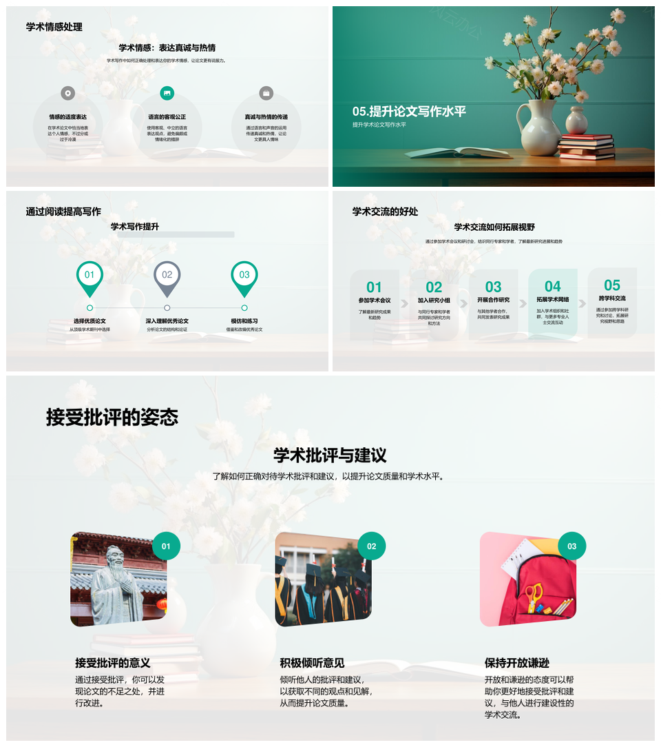 这是一张提升学术论文质量说服力的构成与展示PPT模板,包含学术论文、质量、说服力、构成、展示等主题内容,也可用作提升学术论文质量、学术论文质量说服力、论文质量说服力构成、质量说服力构成展示、提升学术论文说服力、学术论文质量构成、论文质量构成展示、学术论文说服力展示、提升论文质量说服力、质量说服力展示、说服力构成展示、提升论文质量、提升说服力、学术论文质量、质量说服力构成等PPT场景使用。