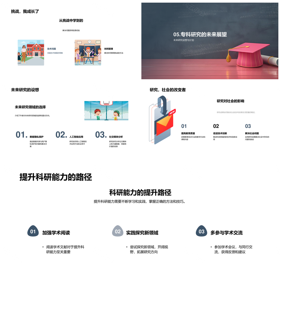 论文答辩研究结果影响总结展望实践方法成果PPT模板