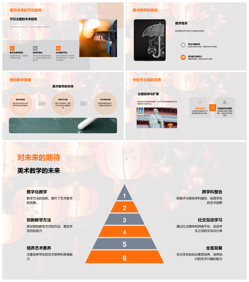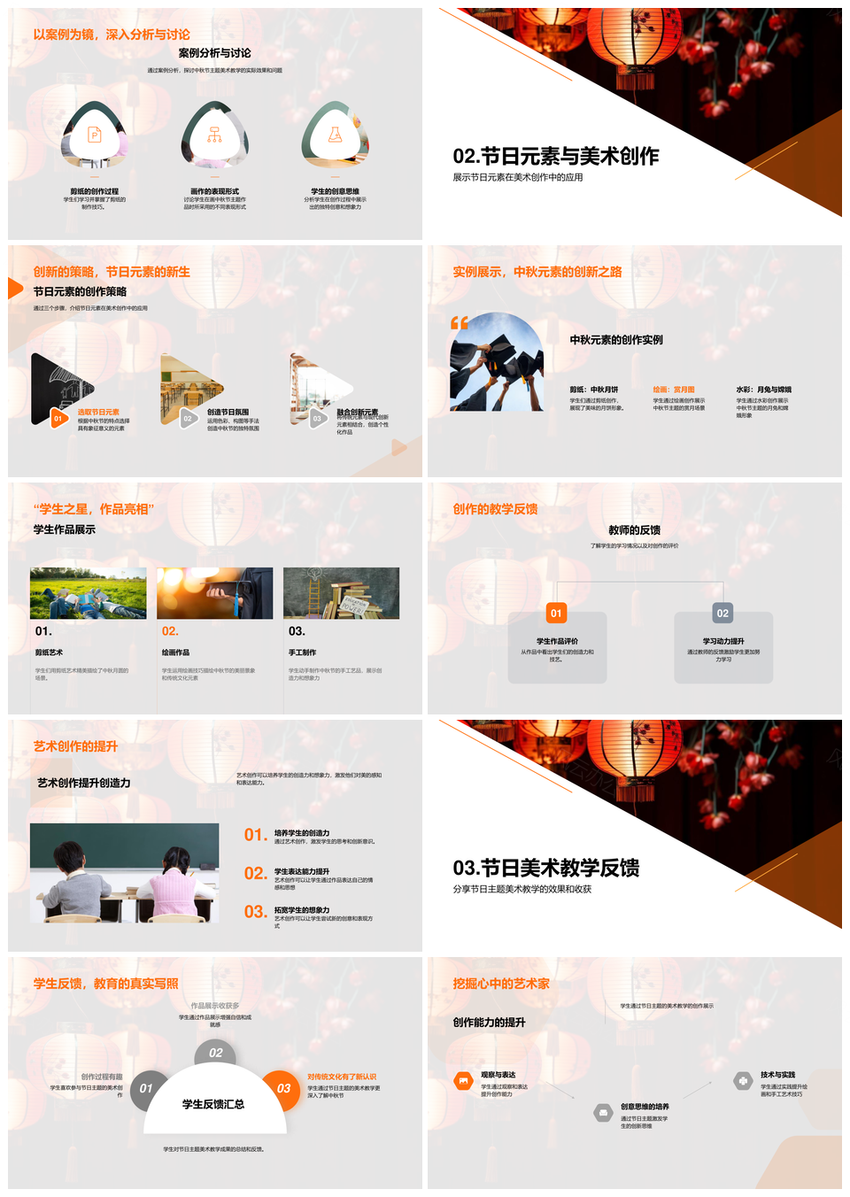 风云办公提供的中秋灯笼美术创思提升艺术教育PPT模板,下载格式为pptx,一共33页,作品中文字及图均可以修改和编辑,图片更改请在作品中右键图片并更换,文字修改请直接点击文字进行修改。