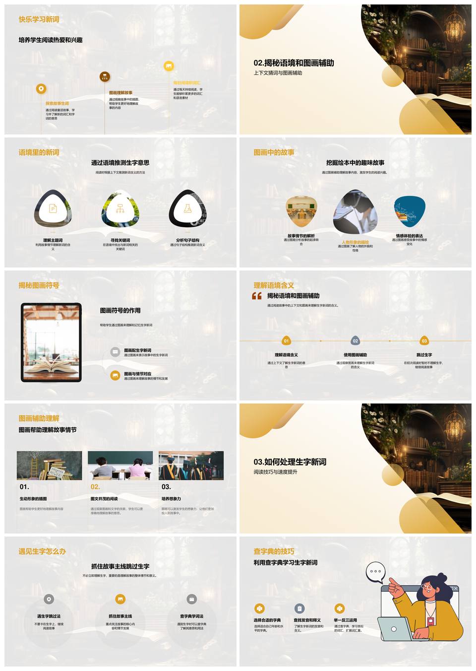 这是一张童话阅读技巧助语文提升识新字增速激趣PPT模板,包含童话、阅读技巧、语文、提升、识新字、增速、激趣等主题内容,也可用作童话阅读技巧识新字、童话阅读技巧激趣、童话阅读识新字增速、童话阅读增速激趣、阅读技巧提升识新字、阅读技巧识新字激趣、技巧提升识新字增速、语文提升识新字激趣、语文提升增速激趣、识新字增速激趣童话、童话阅读技巧提升、语文提升增速激趣、阅读技巧提升语文、技巧提升识新字、激趣增速语文等PPT场景使用。 风云办公提供的童话阅读技巧助语文提升识新字增速激趣PPT模板,下载格式为pptx,一共33页,作品中文字及图均可以修改和编辑,图片更改请在作品中右键图片并更换,文字修改请直接点击文字进行修改。