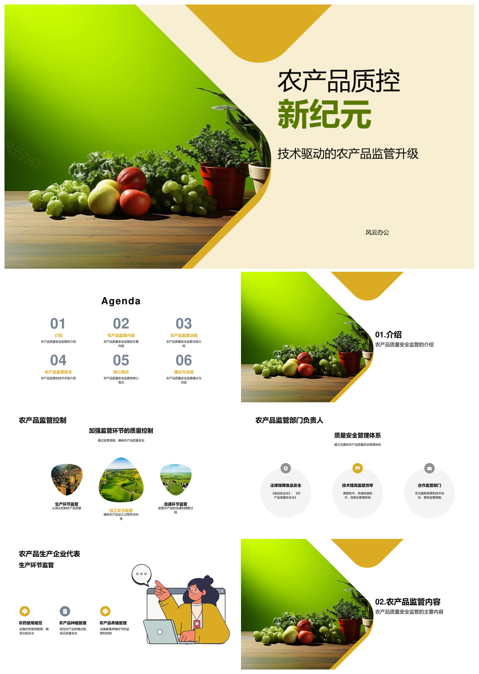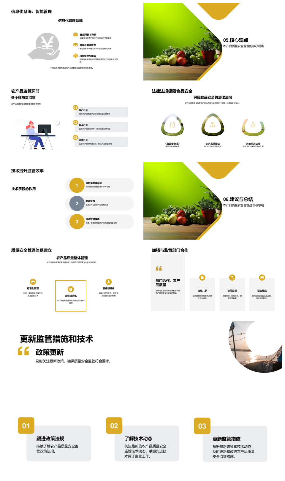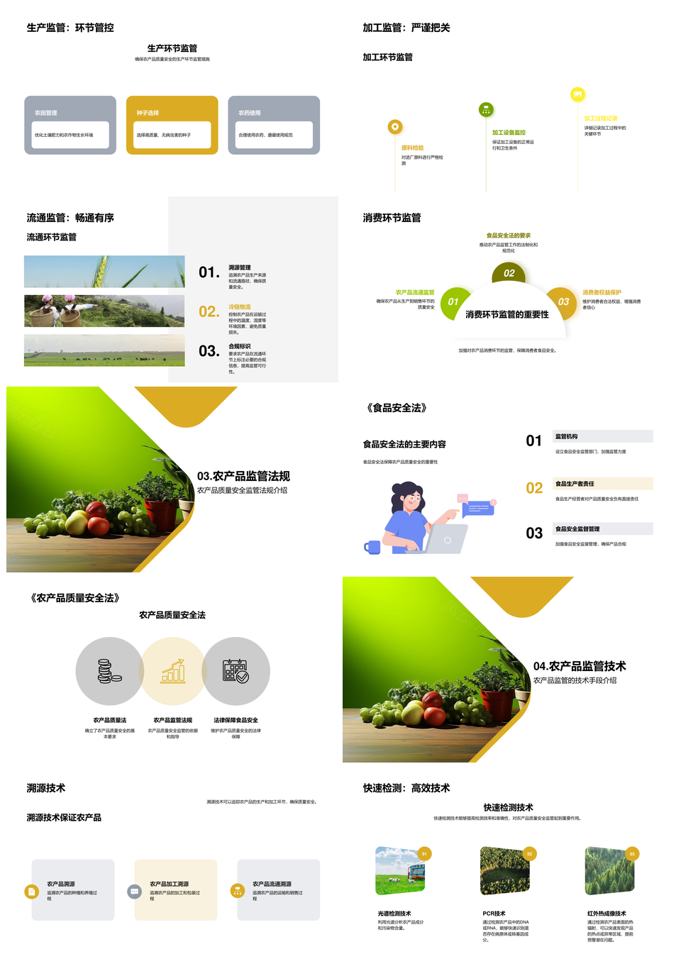 这是一张农产品质量安全全链法治技术监管PPT模板,包含农产品、质量安全、全链、法治、技术、监管等主题内容,也可用作农产品质量安全全链法治、质量安全全链法治技术监管、农产品质量安全全链、质量安全全链法治、全链法治技术监管、农产品质量安全、农产品全链、农产品法治、农产品技术监管、质量安全全链、质量安全法治、质量安全技术监管、全链法治、全链技术监管、法治技术监管等PPT场景使用。