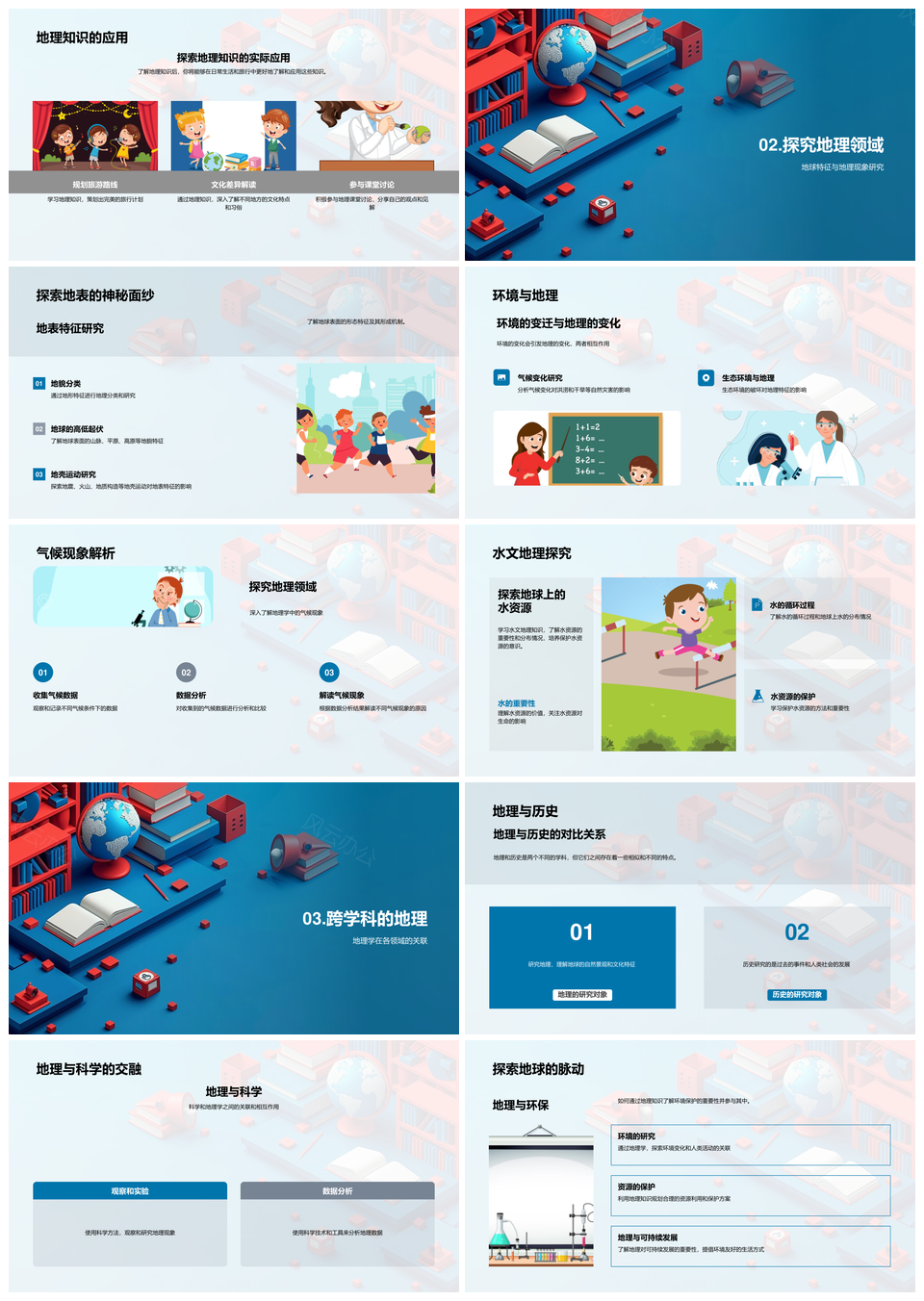 小学地理知识地球环境科学历史教育讲解PPT模板推荐