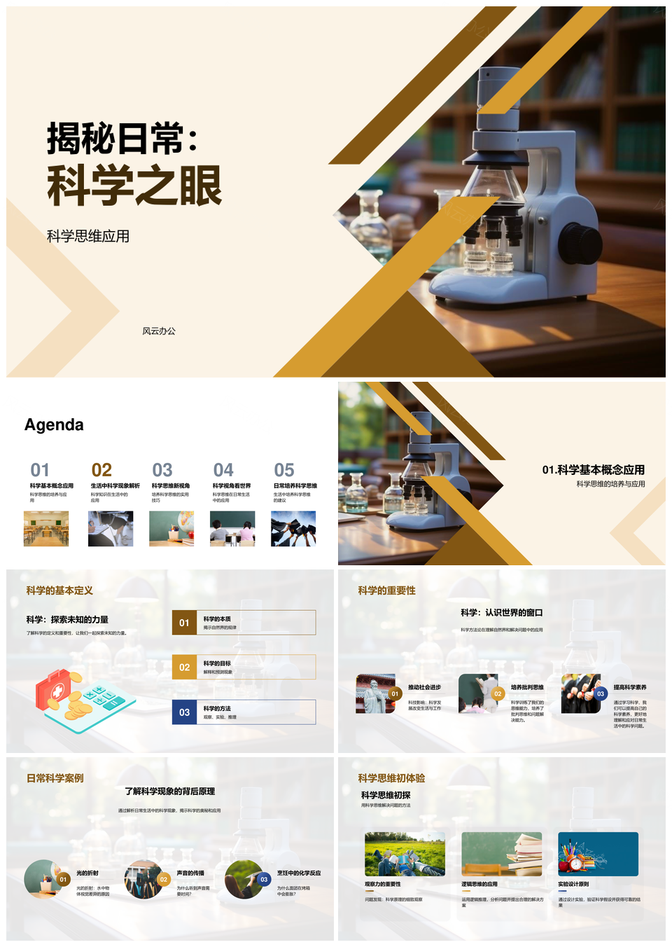 科学应用解析生活现象中的力能与显微概念PPT模板