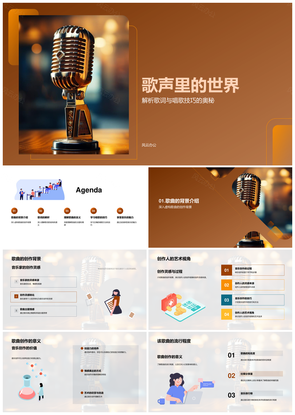 歌声世界创作背景词构主题麦克风社会解析PPT模板推荐